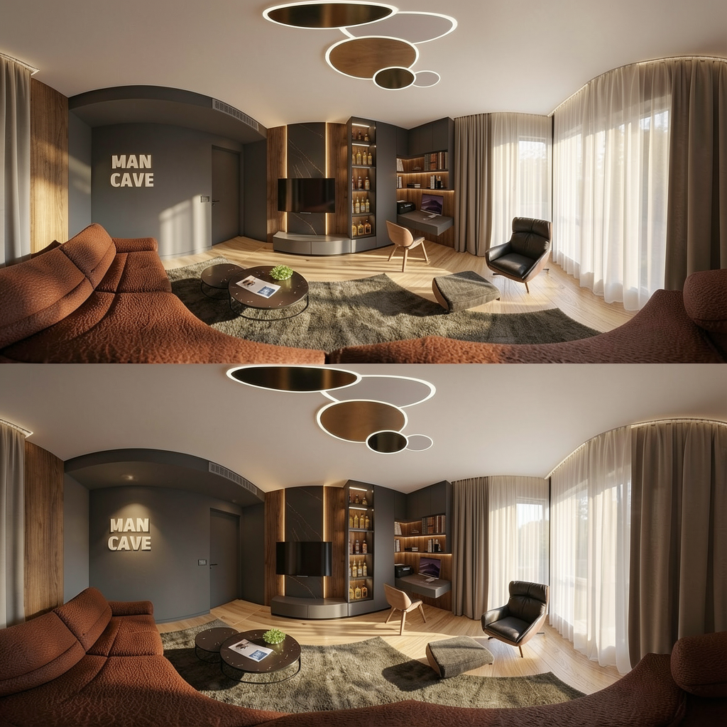 genau dieses rendering berarbeiten fotorealistisches innenraum foto exakt dieselbe perspektive und kameraposition wie das hochgeladene referenzbild 100 identische raumgeometrie exakt gleiche m belanordnung weiches nat rliches tageslicht raum k nstlich ausleuchten sanfte realistische schatten realistische materialien stoff mit leichten gebrauchsspuren hochwertige oberfl chenreflexionen lavabo aus marmor collemandina grigio in braungrau dunkel lavabo innen ebenfalls collemandina im unterbau im obersten drittel eine griffmulde ber die ganze breite unterbaum bel in collemandina mit unterbaubeleuchtung dahinter eine gessi wandarmatur edelstahl vollkommen rahmenloser und hinterleuchteter spiegel mit echten spiegelungen links neben dem lavabo ist die dusche armatur ersetzen mit thermostatmodul axor select 460 90 mit stabhandbrause und grosser brause mit anschluss aus der wand alles in edelstahl geb rstet an der hinteren wand eine nische dellco in box luna in der gr sse 30x30cm mit led licht w nde in der dusche und boden collemandina grigio in braungrau alle anderen sichtbaren w nde sind sichtbeton moderne toilette vertigo wandh ngend in farbe sabbia tecelux bet tigungsplatte links und rechts vom lavabo handtuchstangen und handt cher in weiss schwarze steckdose und schalter links vom lavabo auf gleicher h he wie die armaturen rechts vom lavabo handtuchradiator mit weissem badetuch schwarze runde deckenspots in abgeh ngter weisser decke sehr moderner minimalistischer look nat rliche farbwiedergabe golden hour feeling hell ausleuchten das bild muss wie eine professionelle fotografie aussehen es soll ein echtes und reales foto sein canon eos r5 35 mm festbrennweite f 2 8 hyperrealistisch dslr qualit t raw aufnahme 8k aufl sung extrem scharf perfekte tiefensch rfe professionelle architekturfotografie