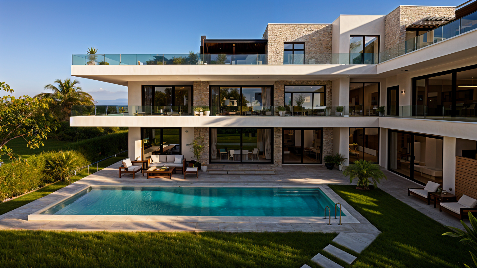 sunny day restored stucco fassade in variation of white and orange ocre remove text from the top of the picture