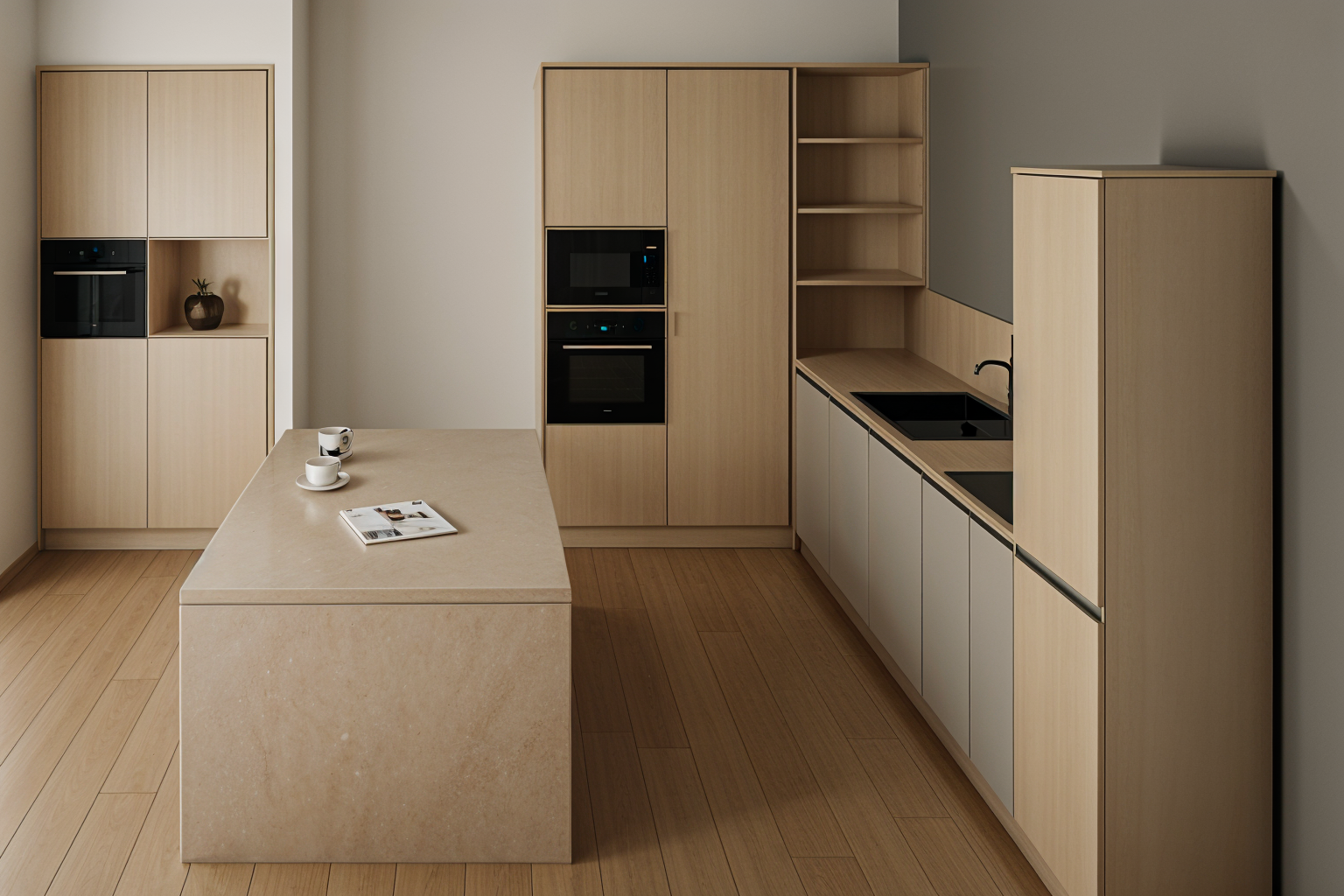 keep forms and sizes of all details in the kitchen such as lustre lights cabinets and etc keep colors and textures same
