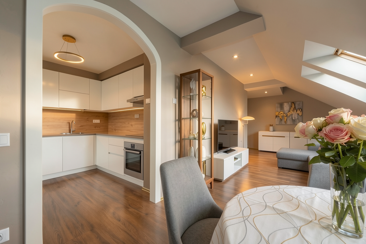 photorealistic enhancement of the provided architectural render preserve the exact architecture layout materials furniture placement and fixtures from the original image with no redesign or modifications the purpose is only to improve realism and lighting quality the floor should not be reflective and the room should be well illuminated
