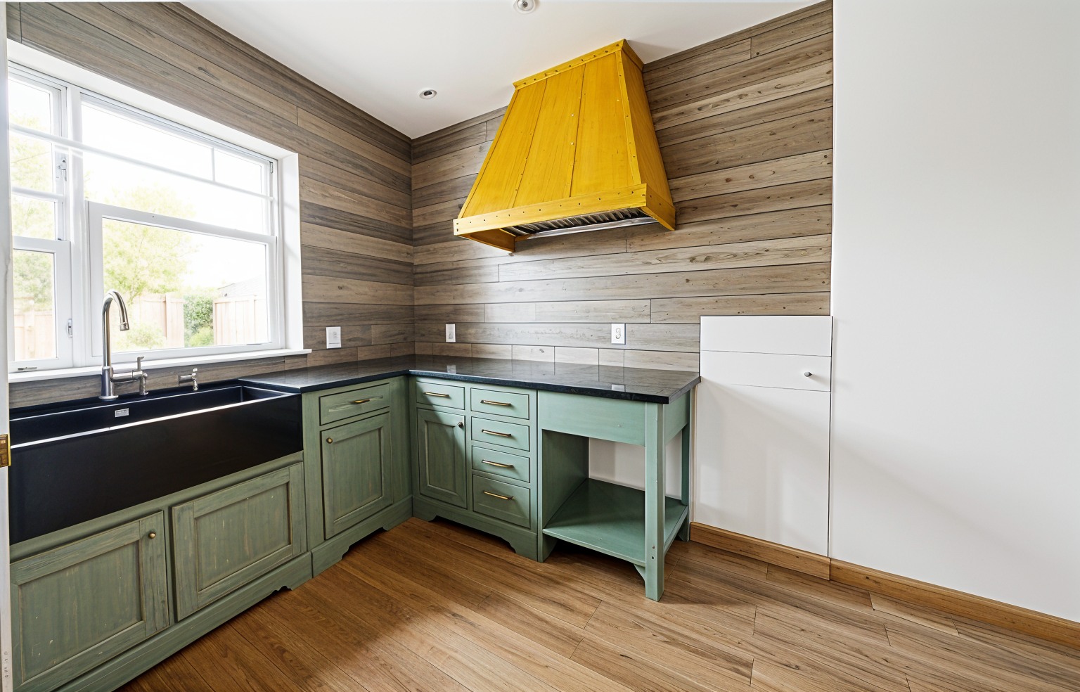 shiplap backsplash distressed green cabinets living room behind kitchen