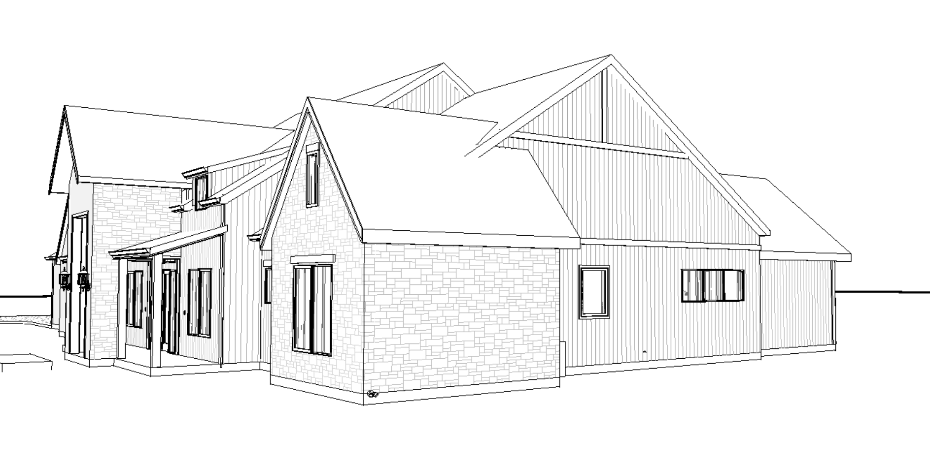 white stone white board and batten black windows black rooh f over casted day rainy horse ranch