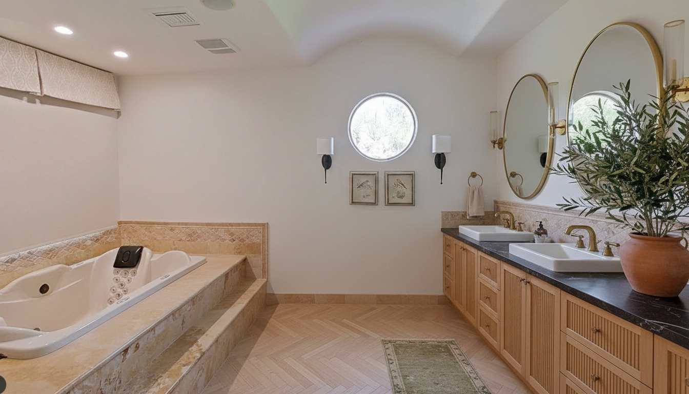 exterior shot add tub under circular window