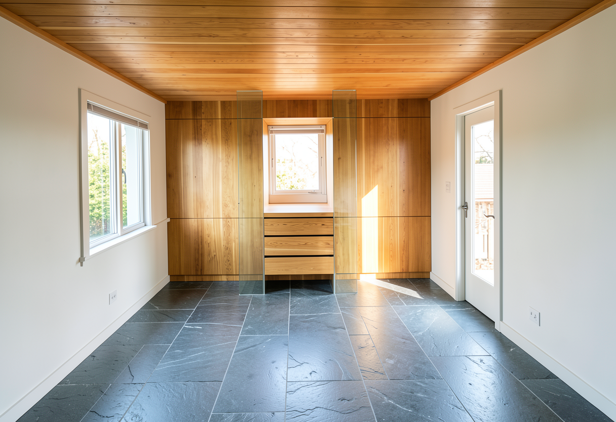 make door and window wood make floor a little lighter color and matte finish