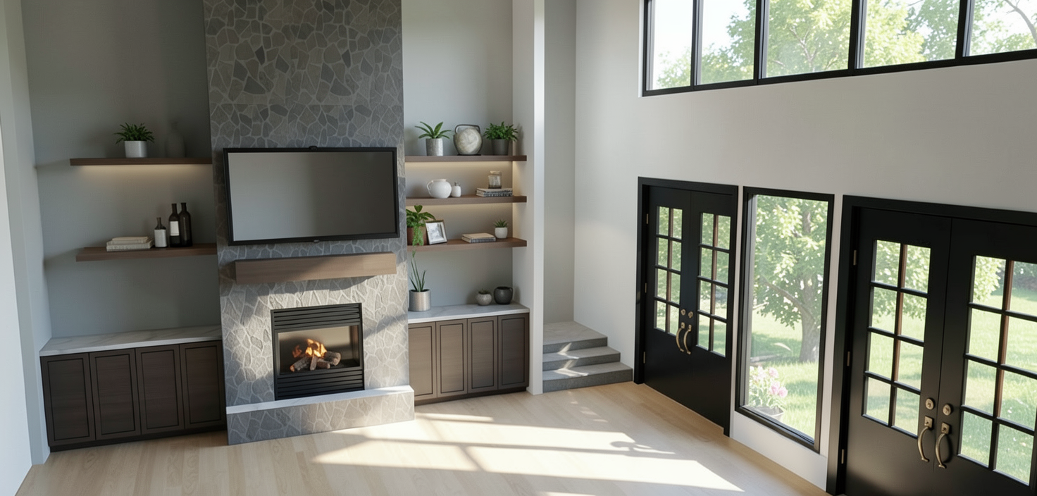 cerate home cinema in this floor plan room no changes in structure room modern interior in 19 centry buliding high celight light colours