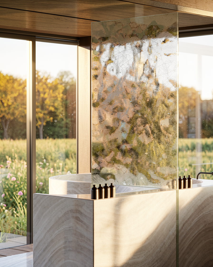 a model of a house add few rees in background for context add very few bt neat vegetation with floral ones for context too the upper walls should be beidge very light brownish retaining the three horizontal key lines give picture sunsety vibe 3 4 p m add creamish interior ighting very low brightness