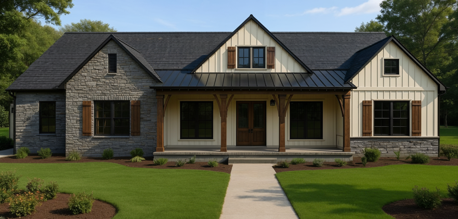 colonial revival exterior shot add landscaping and a sky background with lanterns on all the porch columns architecture