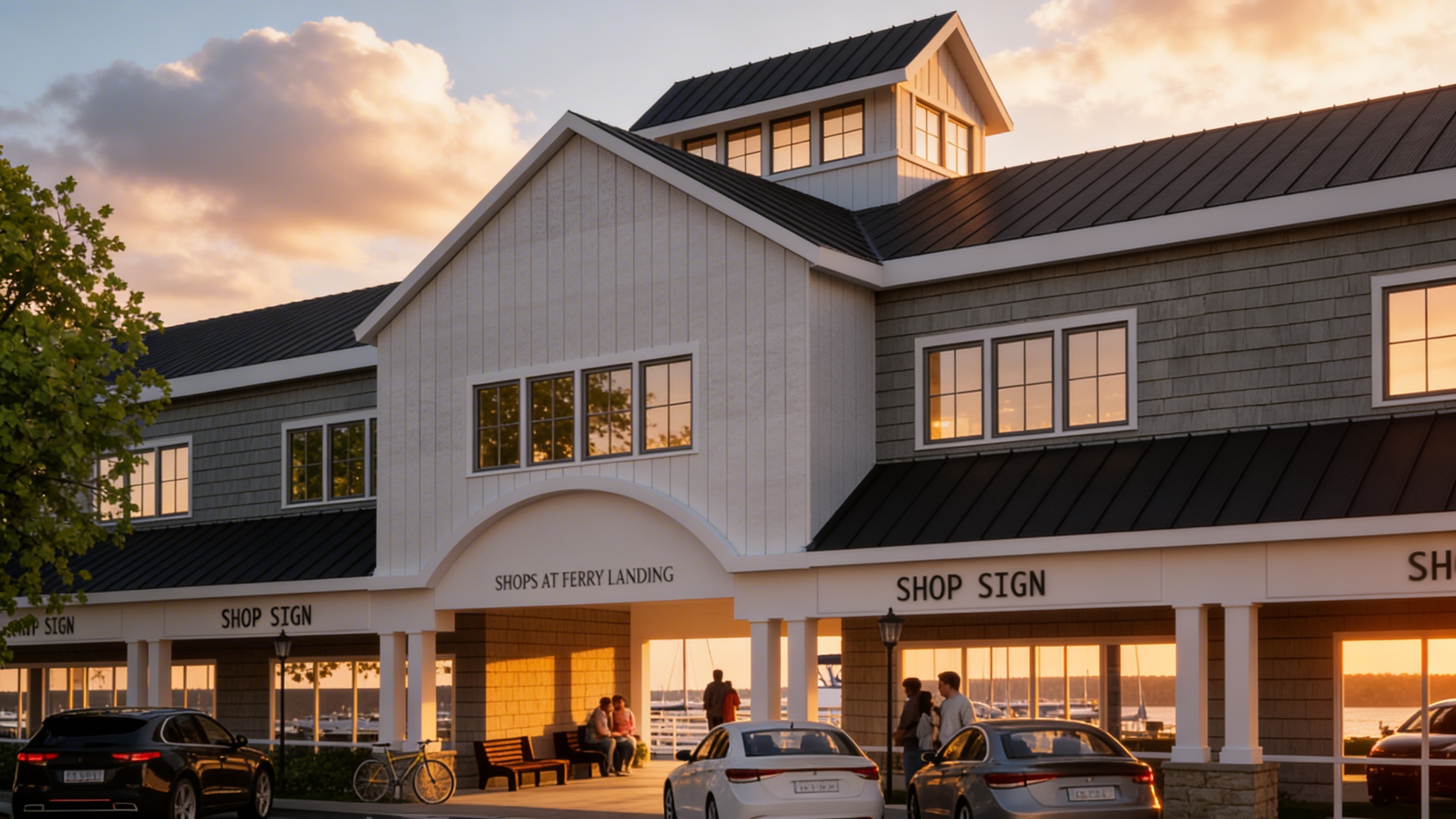 render a modern architectural scene showcasing a minimalistic building with smooth sand colored walls and expansive glass windows reflecting the sky the path in front of the building is composed of textured dark brown cobblestones lush green manicured lawns and bushes surround the structure enhancing the natural ambiance emphasize a bright clear blue sky giving the atmosphere a serene and open feel
