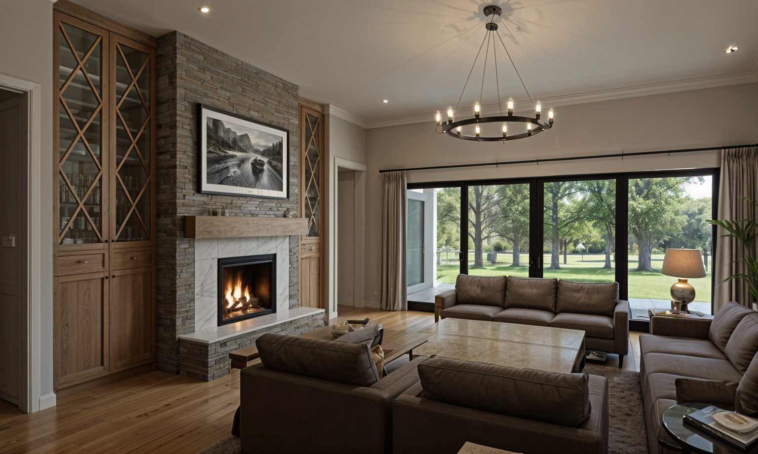 do not change the shape of the buildings do not change the inscriptions and graphic markings change the grass to a more realistic one and add decorative flowers to the lawn