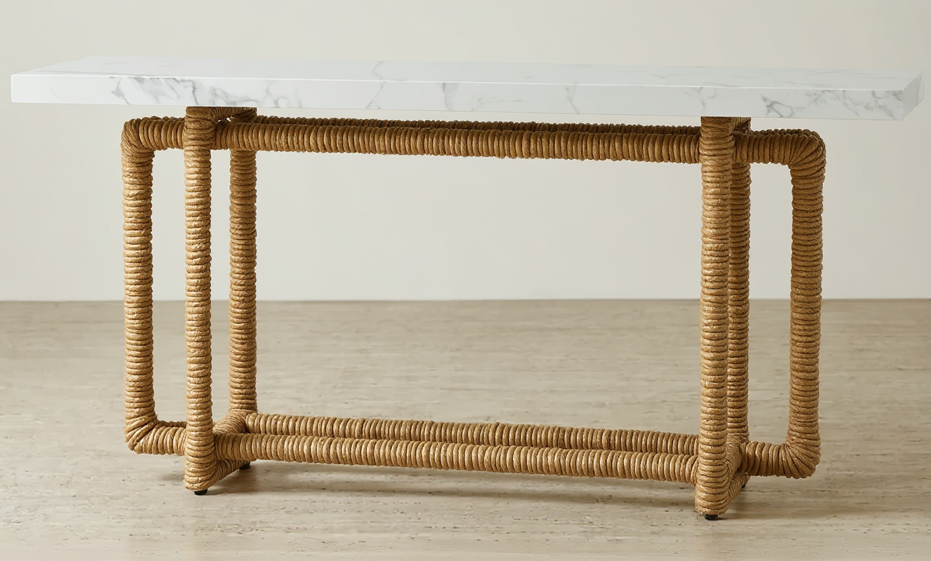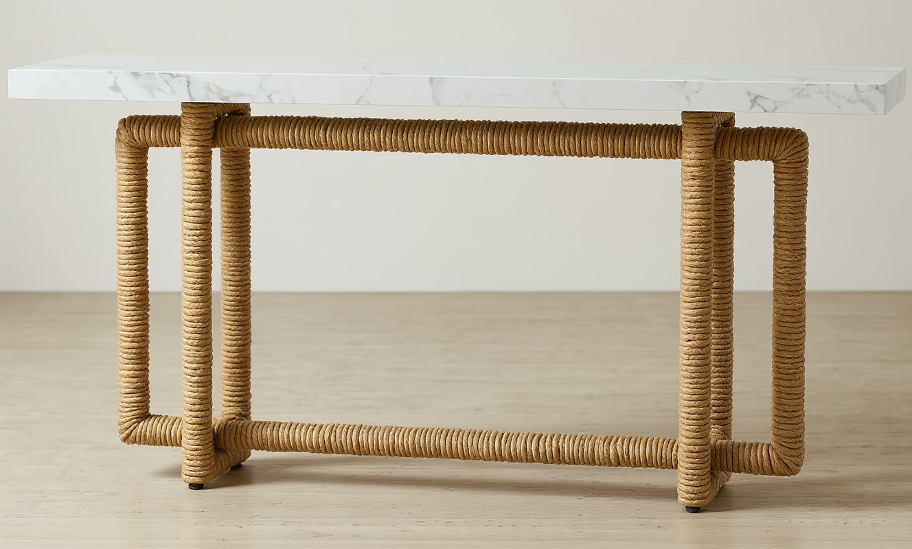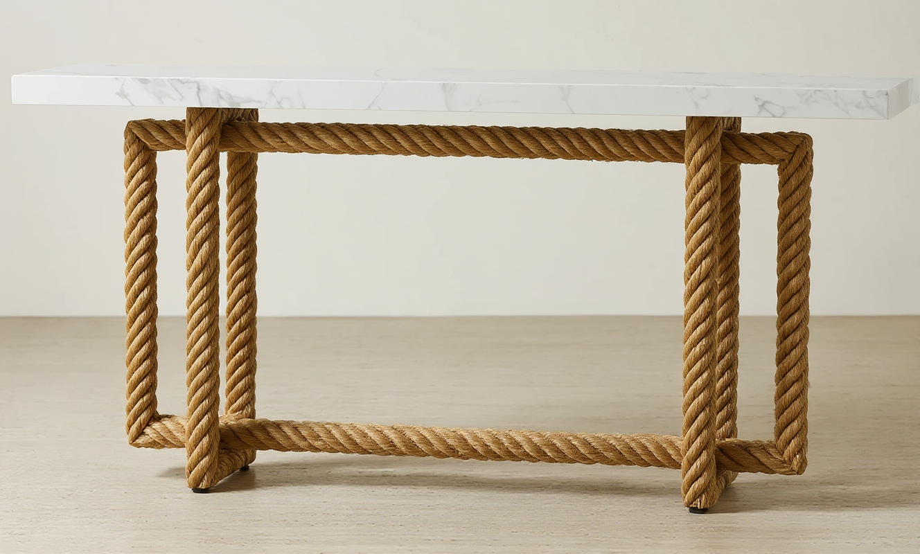 accent alternate rope x weaving legs finish white marble top finish