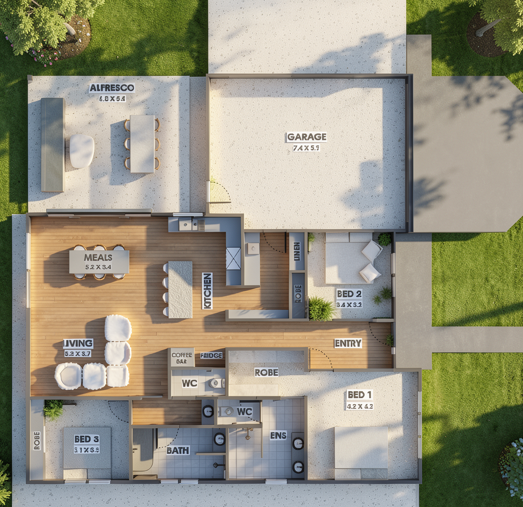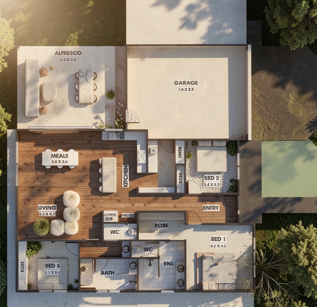 make this rendering into a real photo preserve the material colors patterns scale and dimensions don t change any geometry don t change any colors unless specified don t change the floor or wall color include micro detail finishes add a small oval fluffy dark red rug in front of the tub add a towel hook in polished nickel to the right side of the wall behind the tub and place a red silk robe on it make the sliding doors a medium brown wood add 2 recessed cans where the lights are located keep the ceiling the same color upper portion of the wall behind the tub update the wall behind the shower to match the paint color of the ceiling and upper portion of the wall behind the tub