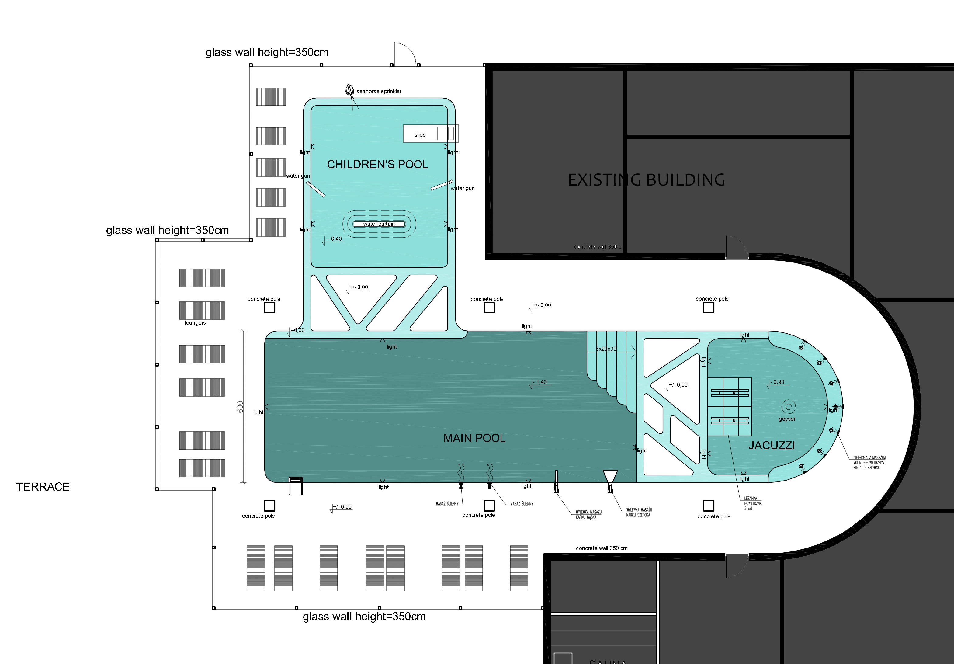 make a view according to this pool architectural flloor plan