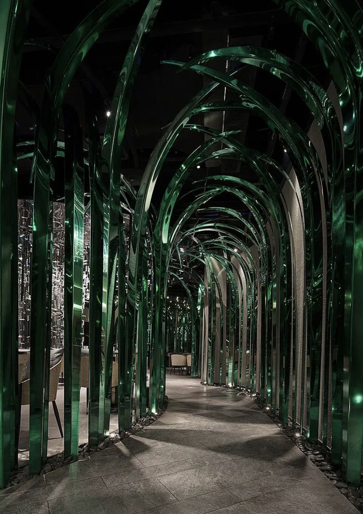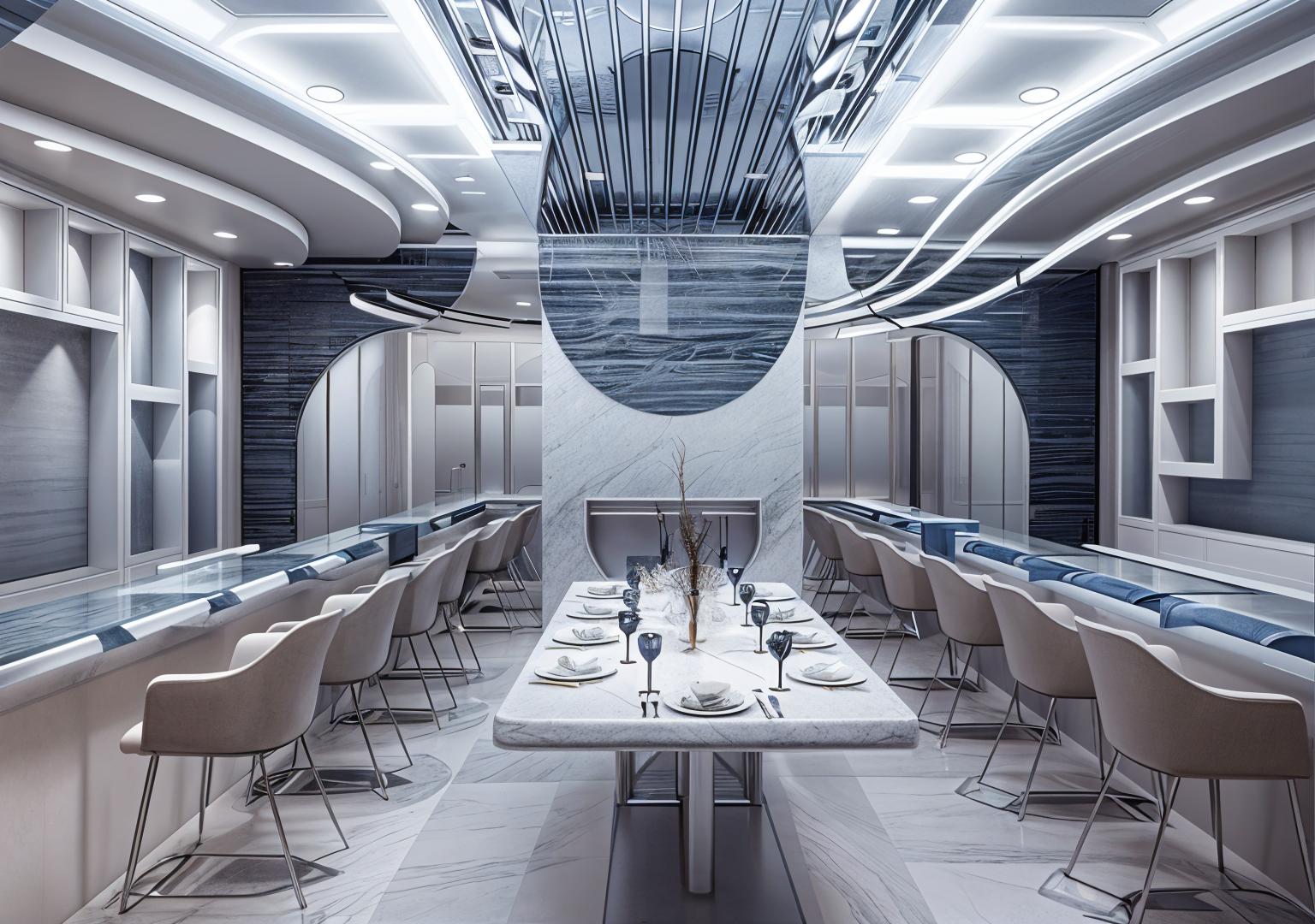interior shot render a luxurious jewellery store interior inspired by the reference image use the exact same colors materials and finishes as in the reference including the flooring wall treatments shelving design and lighting style maintain the same modern elegant atmosphere add finely detailed jewellery pieces arranged inside the display shelves and counters necklaces rings earrings and bracelets placed on velvet holders and glass cases ensure the jewellery sparkles subtly under the lighting enhancing the sense of luxury keep the space refined minimal and premium with realistic textures and high quality details