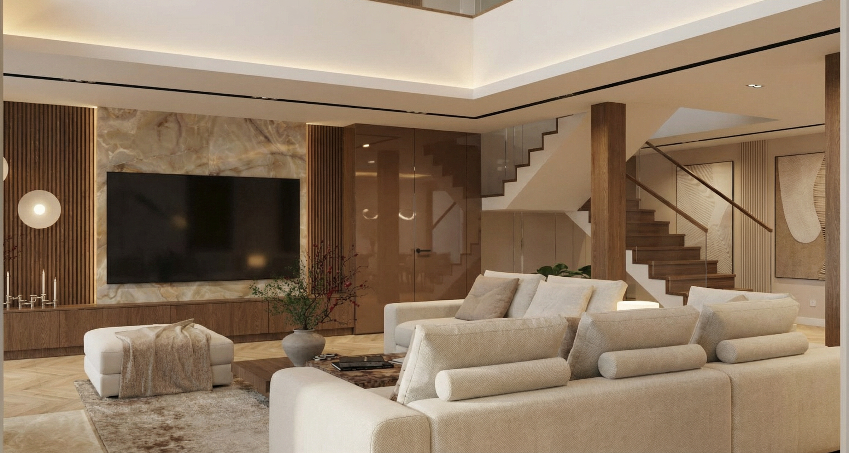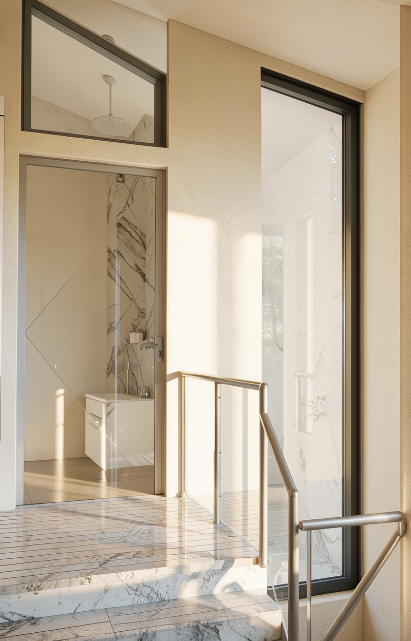 floors are oak table is light oak the chairs are olive brown fabric with medium oak legs the back wall is salamander by benjamin moore the other walls are light grey color the rug is a brown grey with a pattern the ceiling is 10 and the cabinet on the left side of the partial wall go up to 8 the wall cabinets are white and the base cabinets are navy with a white quartz countertop there is a stainless hood between the white cabinets the window frames are white the cabinet on the right is salamander and the wall above it is distressed mirror the counter is soapstone