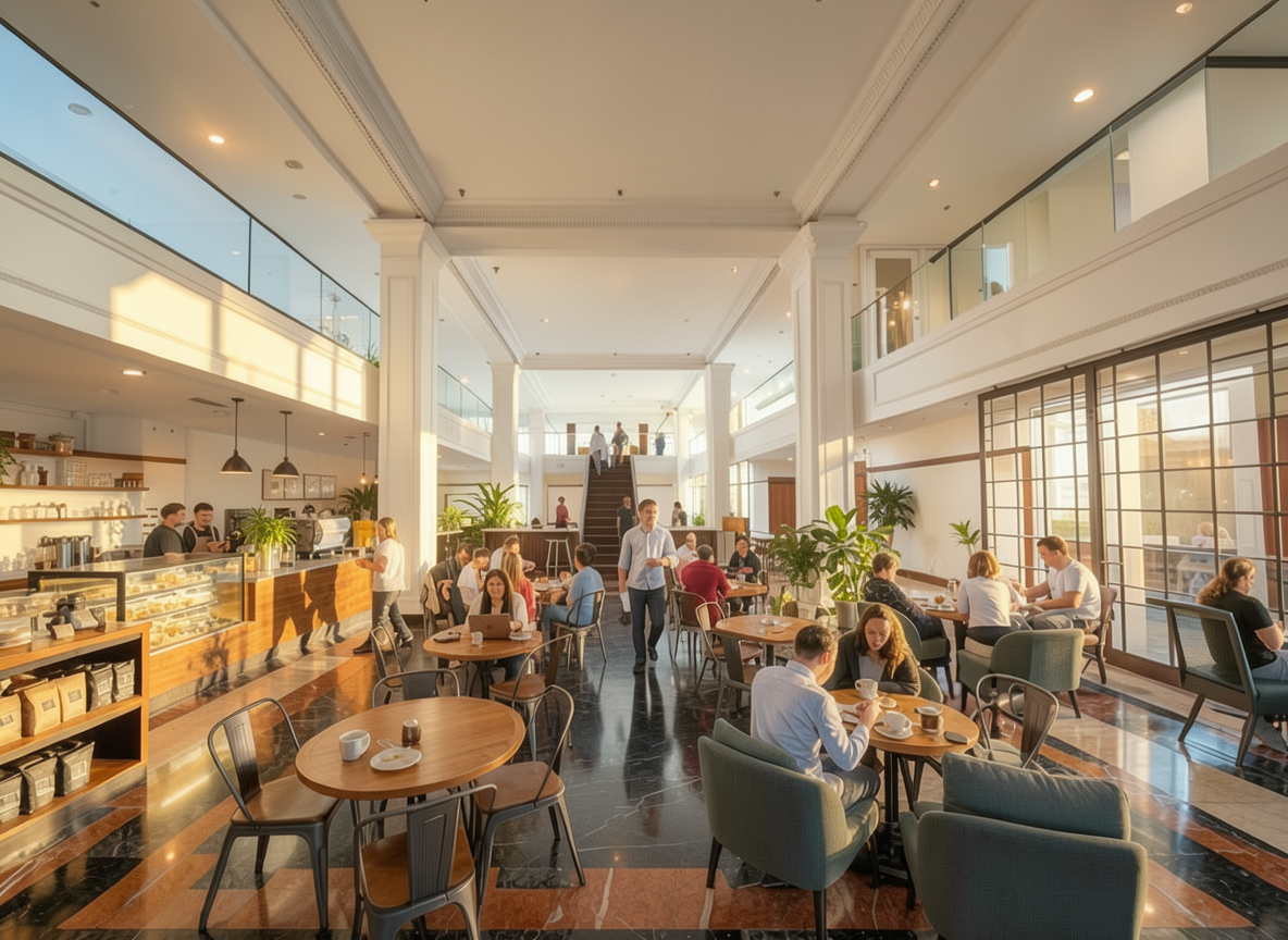 make photorealistic warm gray siding dark green trim on gables cedar shakes in gables add low mountains in background landscaping with river rock front view with early afternoon sun