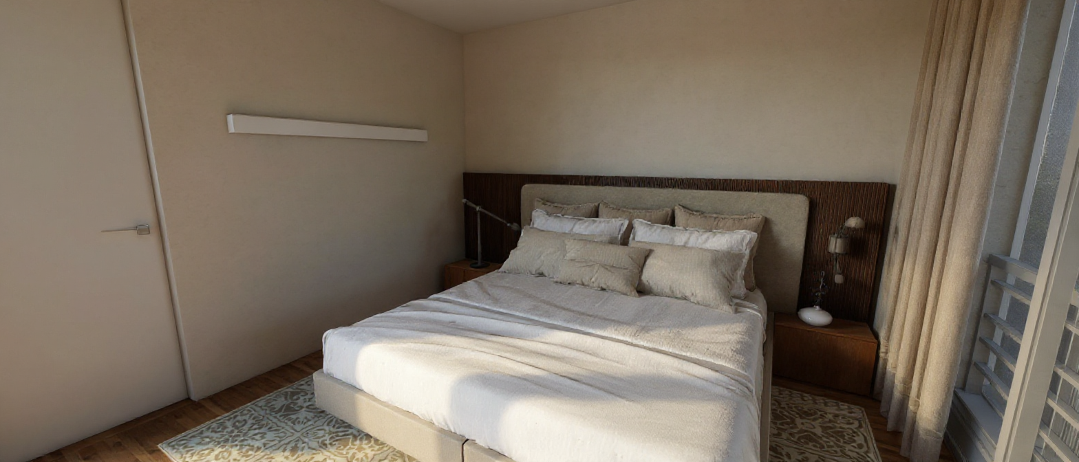 create a super realistic rendering of the bedroom keeping all the original characteristics and design elements of the room the space should have natural lighting with sunlight entering making it bright and well illuminated all fabrics should appear realistic and textured showing fine details and material depth maintain the authentic proportions materials and atmosphere of the existing room