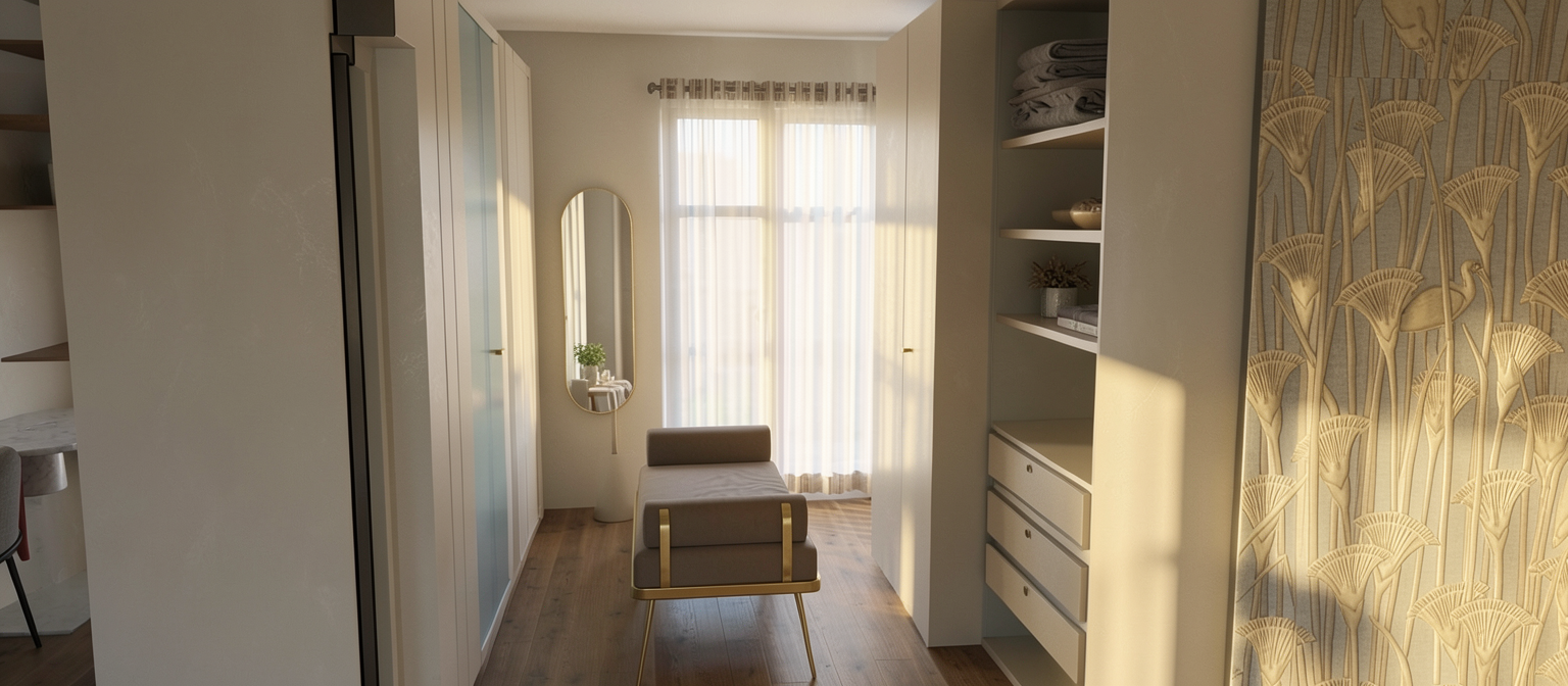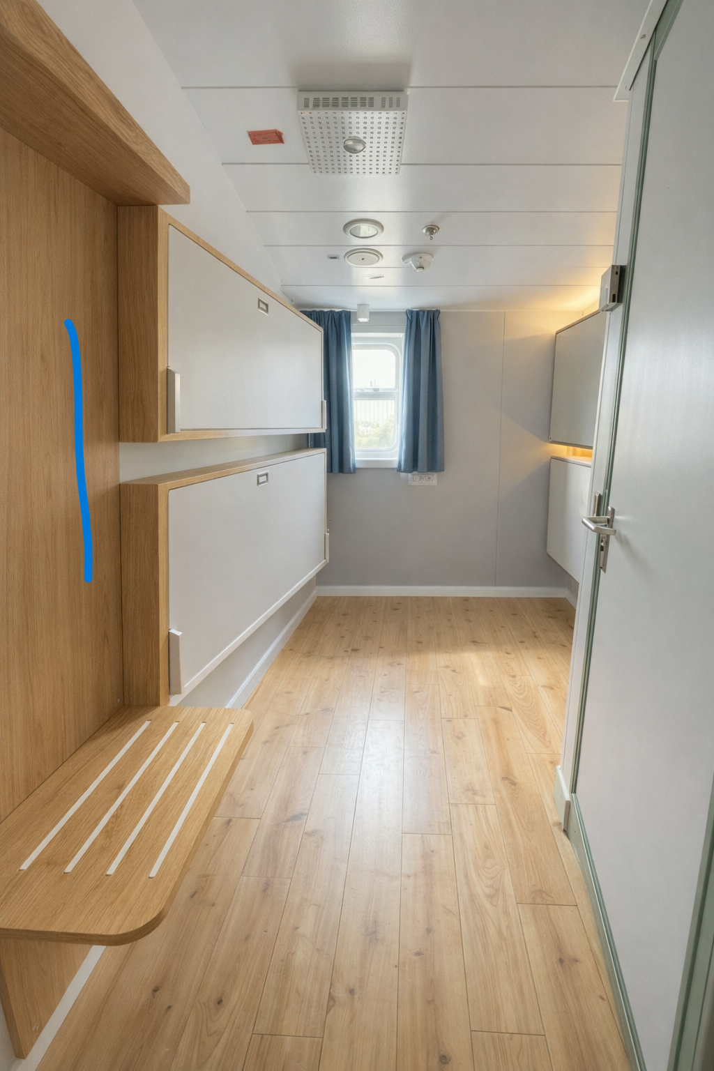 put a mirror in the niche of the wooden furniture where the blue line is