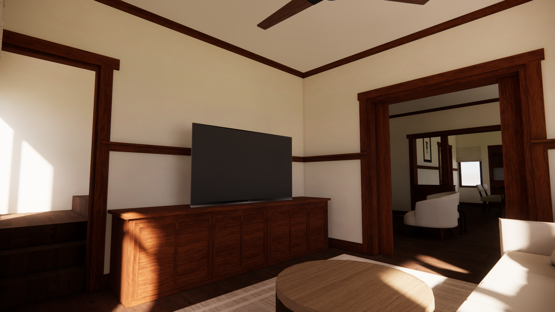 create a realistic render of this sketchup image maintain all colors and textures