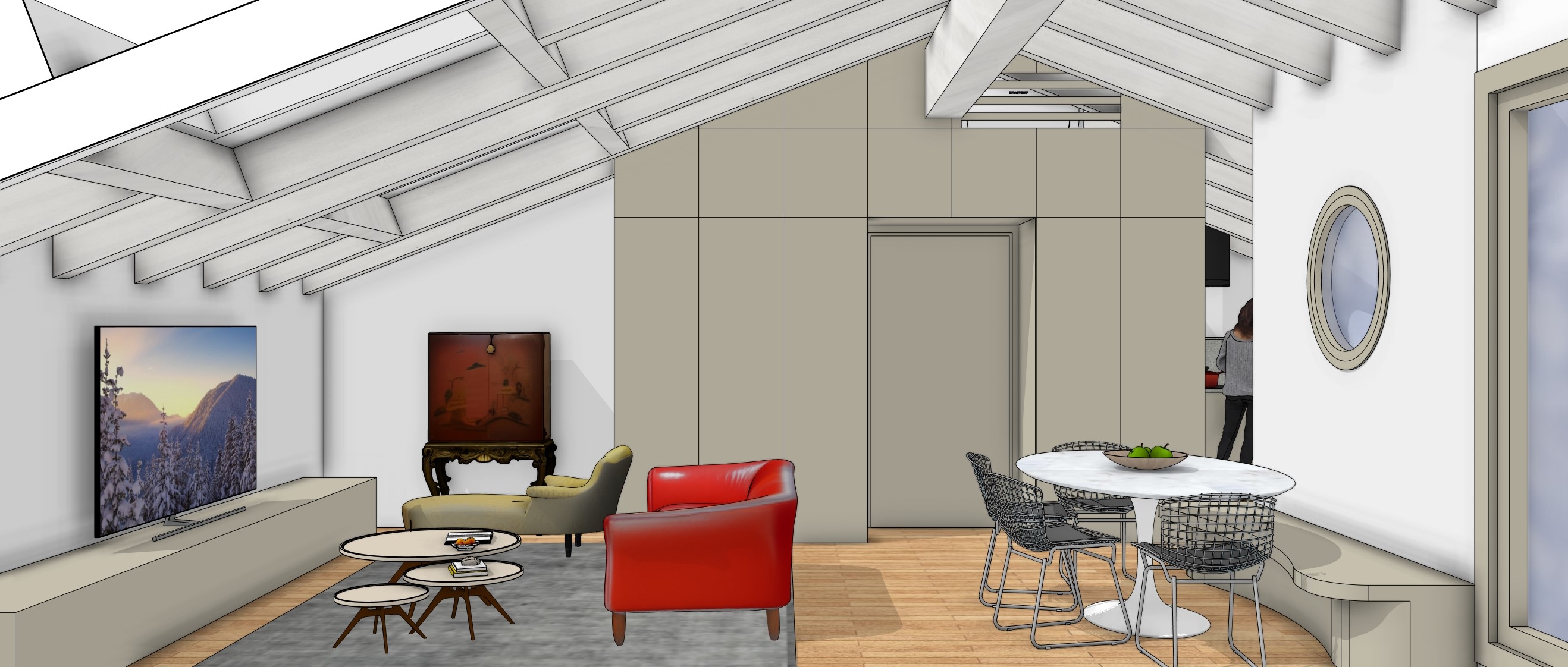 white wood beams on the ceiling