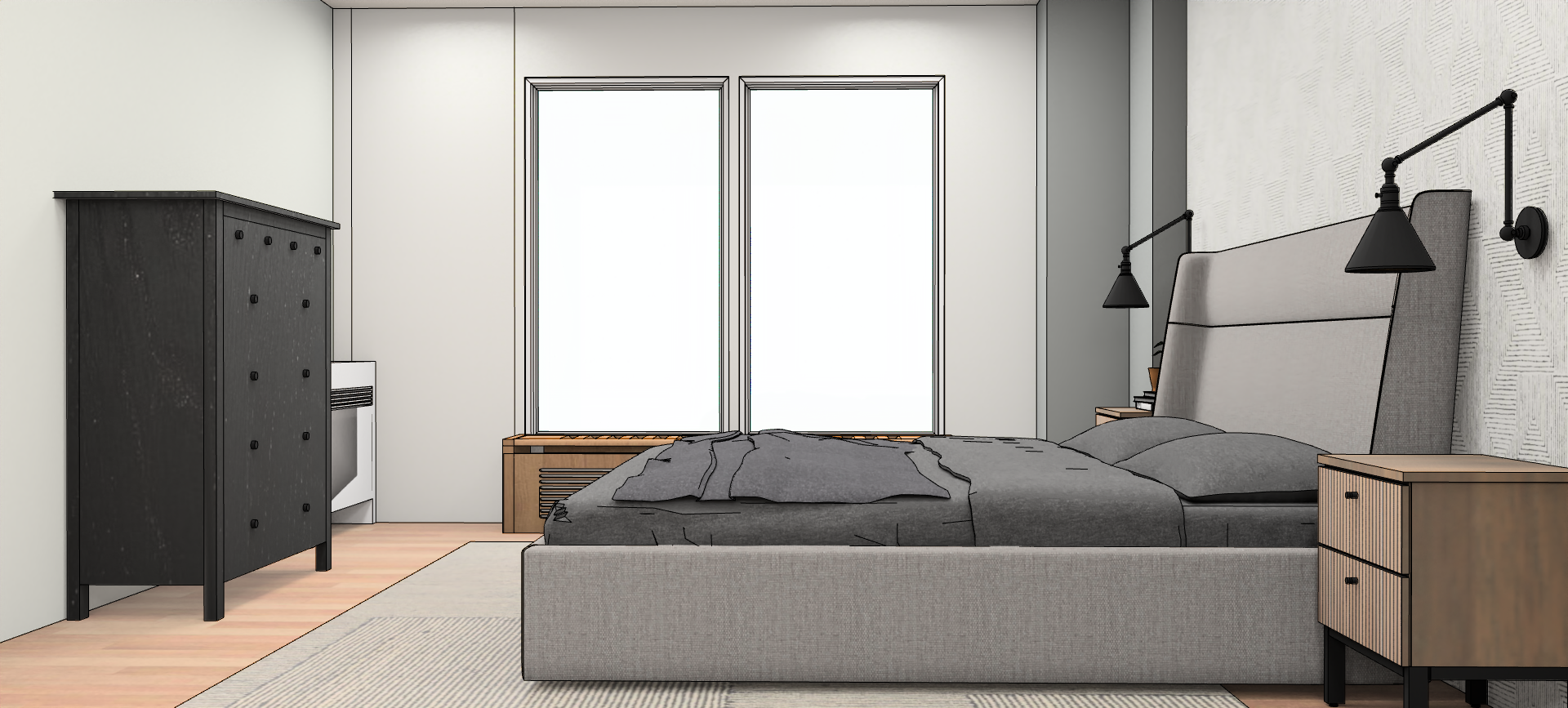 add recessed lighting to the ceiling add accessories on the dresser