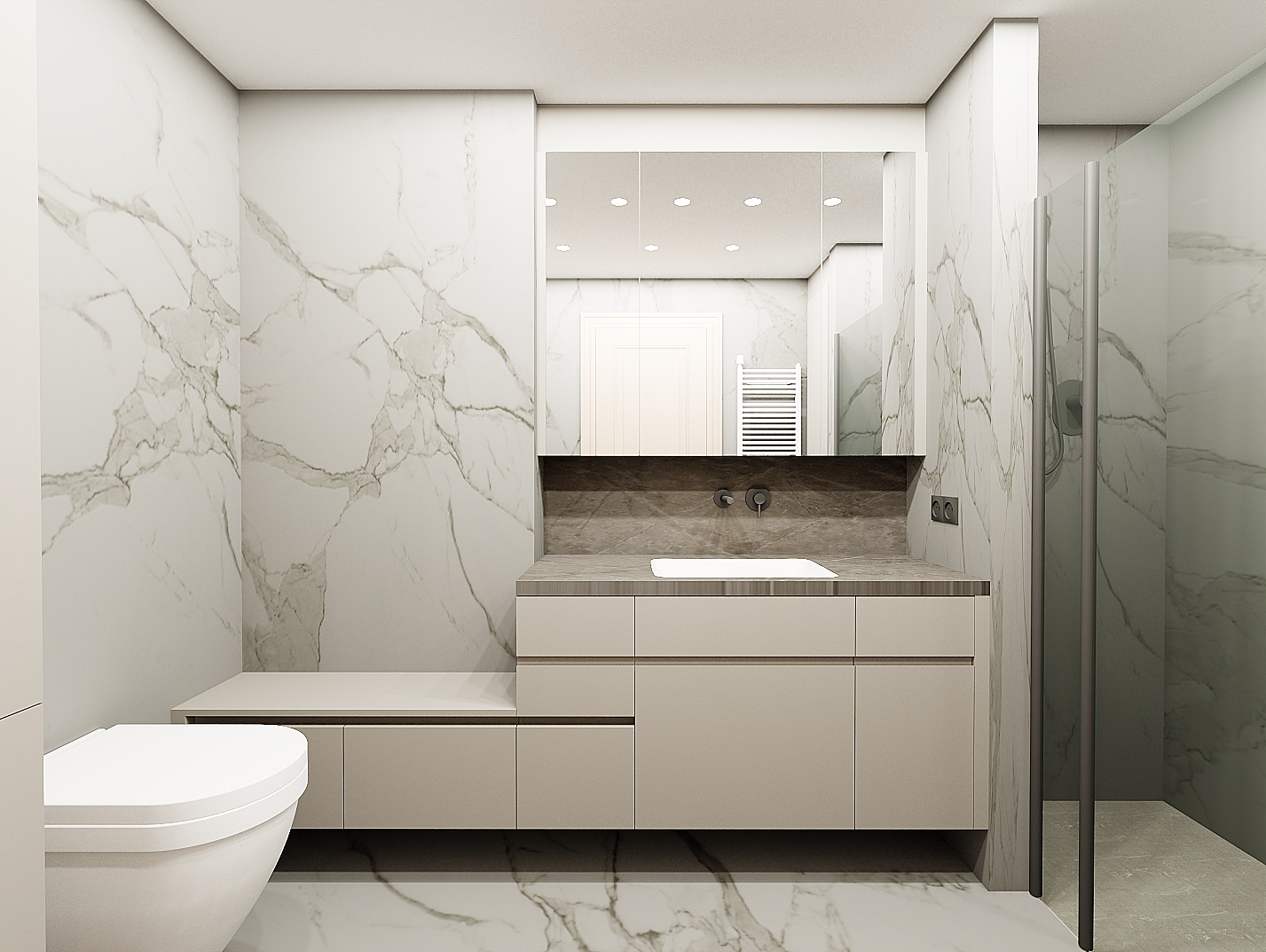 there should only be led lighting under the mirrored cabinet and a soap dispenser next to the sink