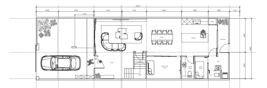 strictly follow the layout shown in the plan maintain exact wall positions and room proportions keep kitchen dining and living areas in the same locations preserve window and door placements maintain circulation paths and spacing generate a perspective view from the living room facing the kitchen and dining area use a simple modern minimalist style with neutral tones and natural lighting this is an architectural visualization task do not redesign or reinterpret the layout