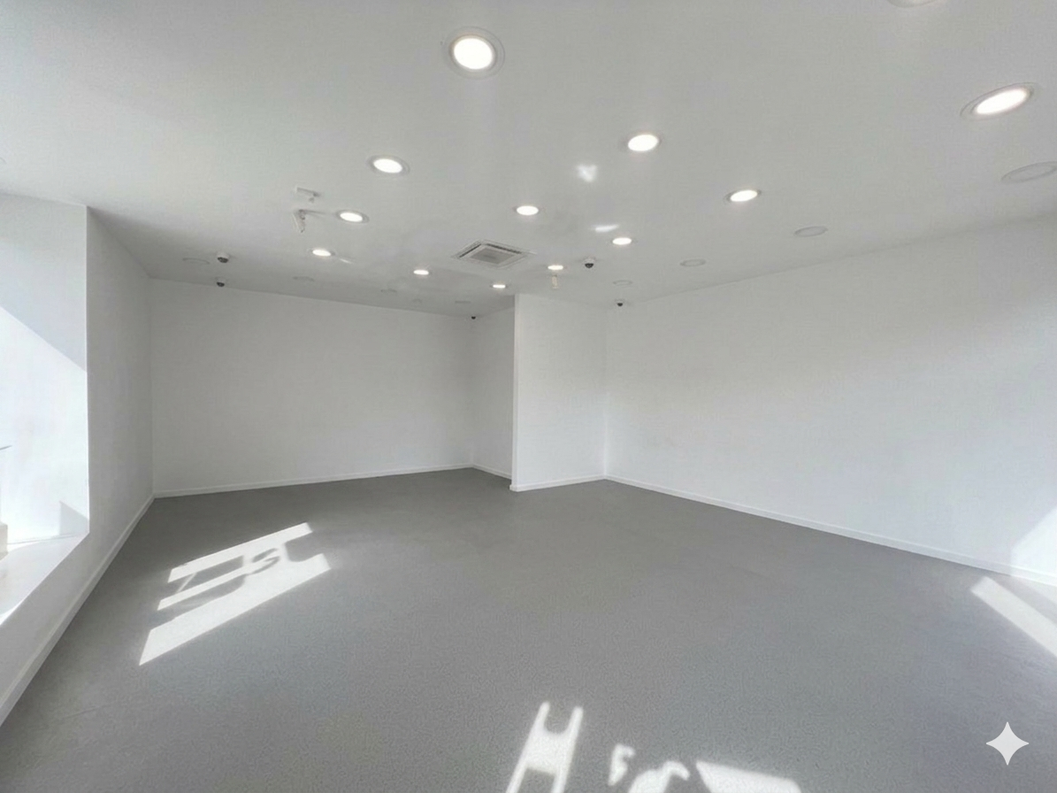place 3 client discussion desks like the one in the reference picture one on the walla on the right one on the wall on the left and one on the wall we cant see towards the camera