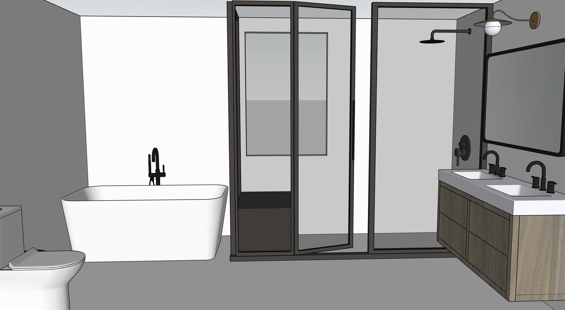 add modern shiplap to walls add grey tile to shower and floor black vanity