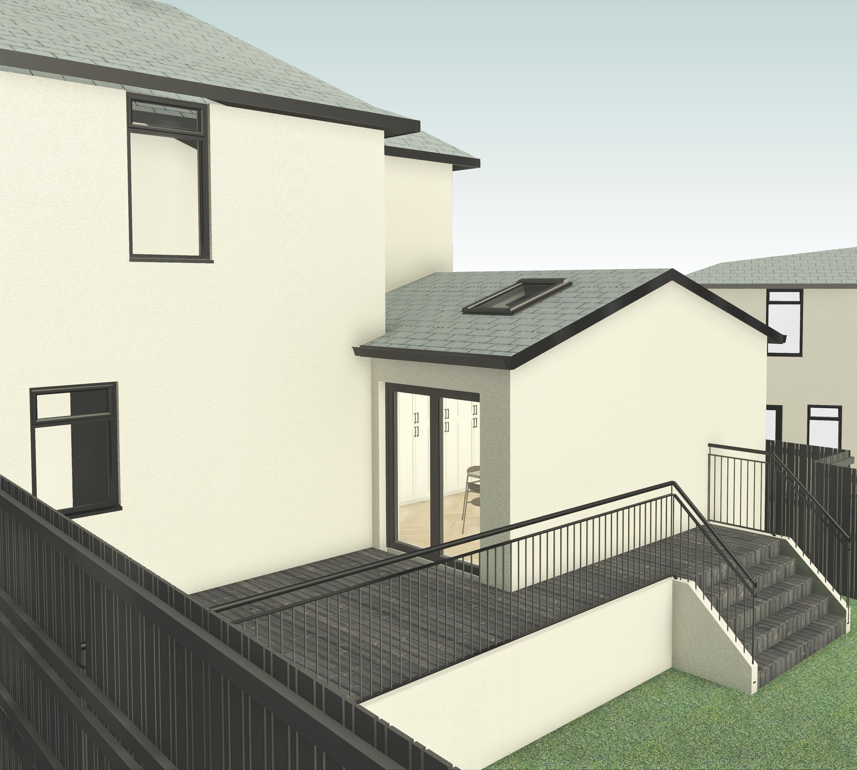 make grass realistic maintain materials shown but realistic walls to be cream render where shown as white roof to be square concrete slate effect tilesadd sky with few clouds