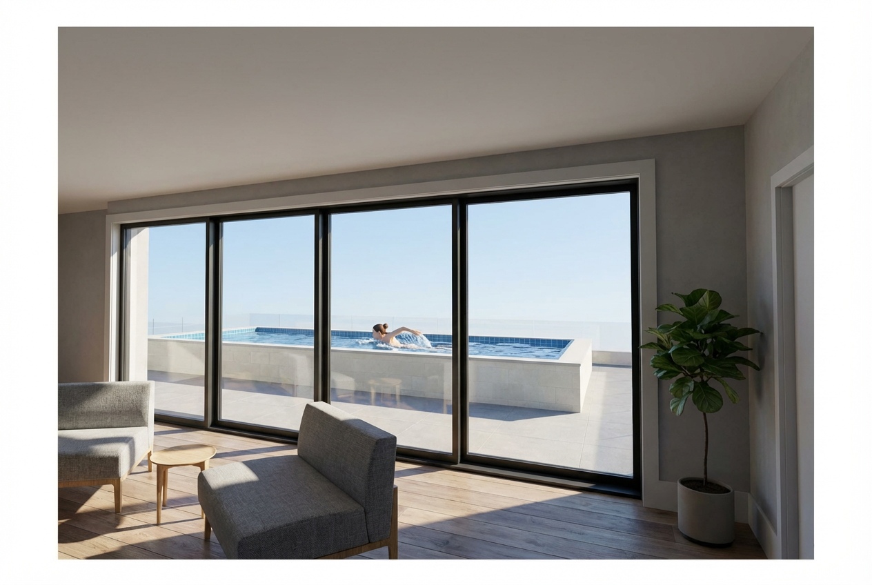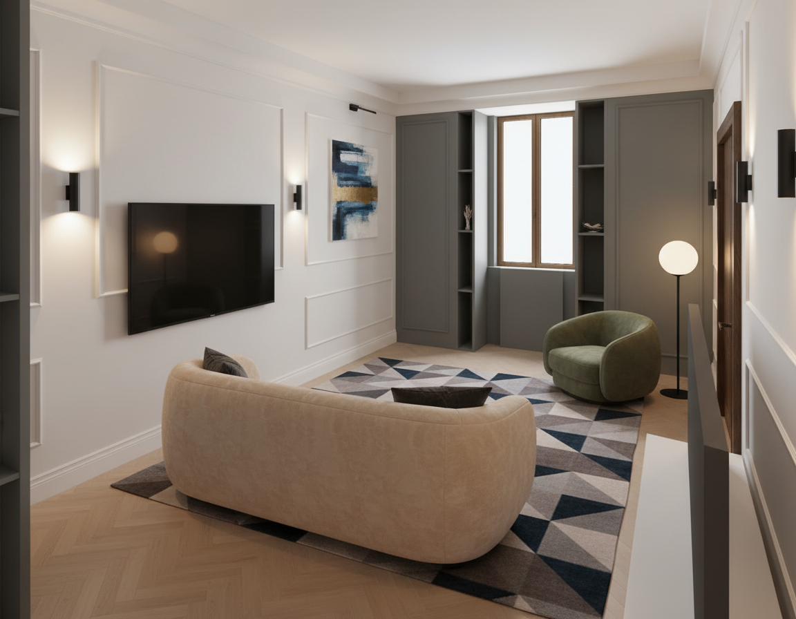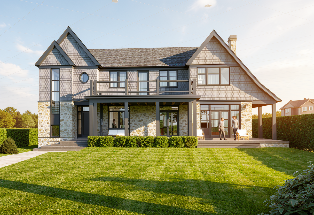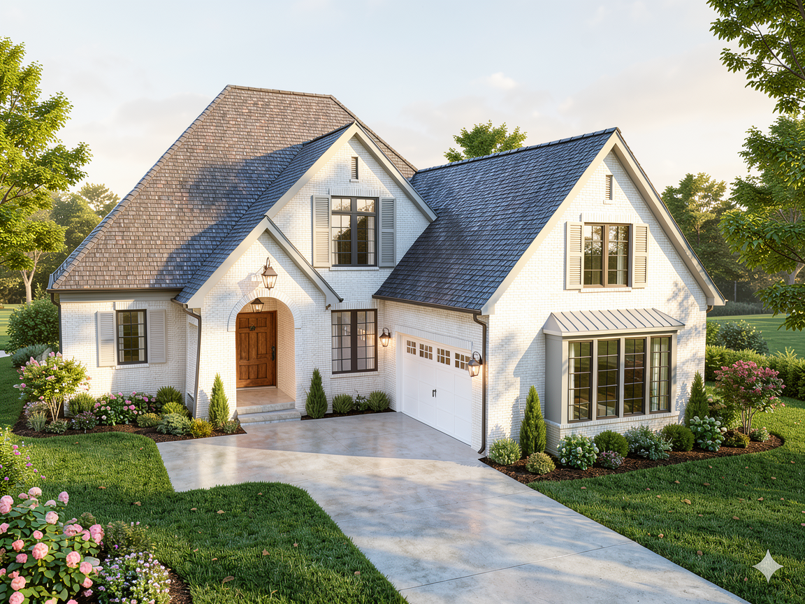 fammi lo scenario notturno con giardino illuminato in modo soffuso anche sotto alle piante le facciate della casa con pochi punti luce e stripled