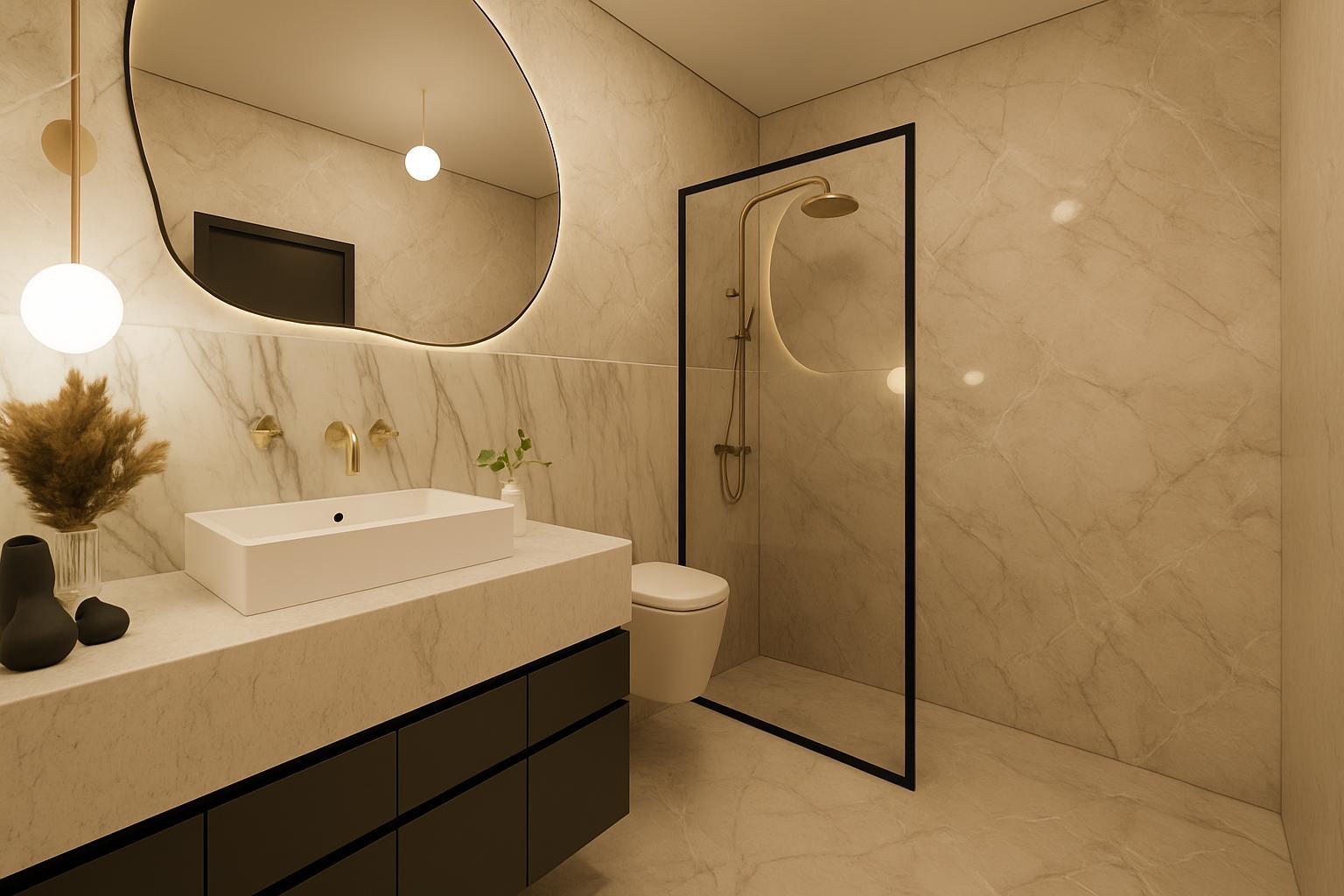 interior shot adjust colors and materials to moodboard same tiles on the floor like on the walls