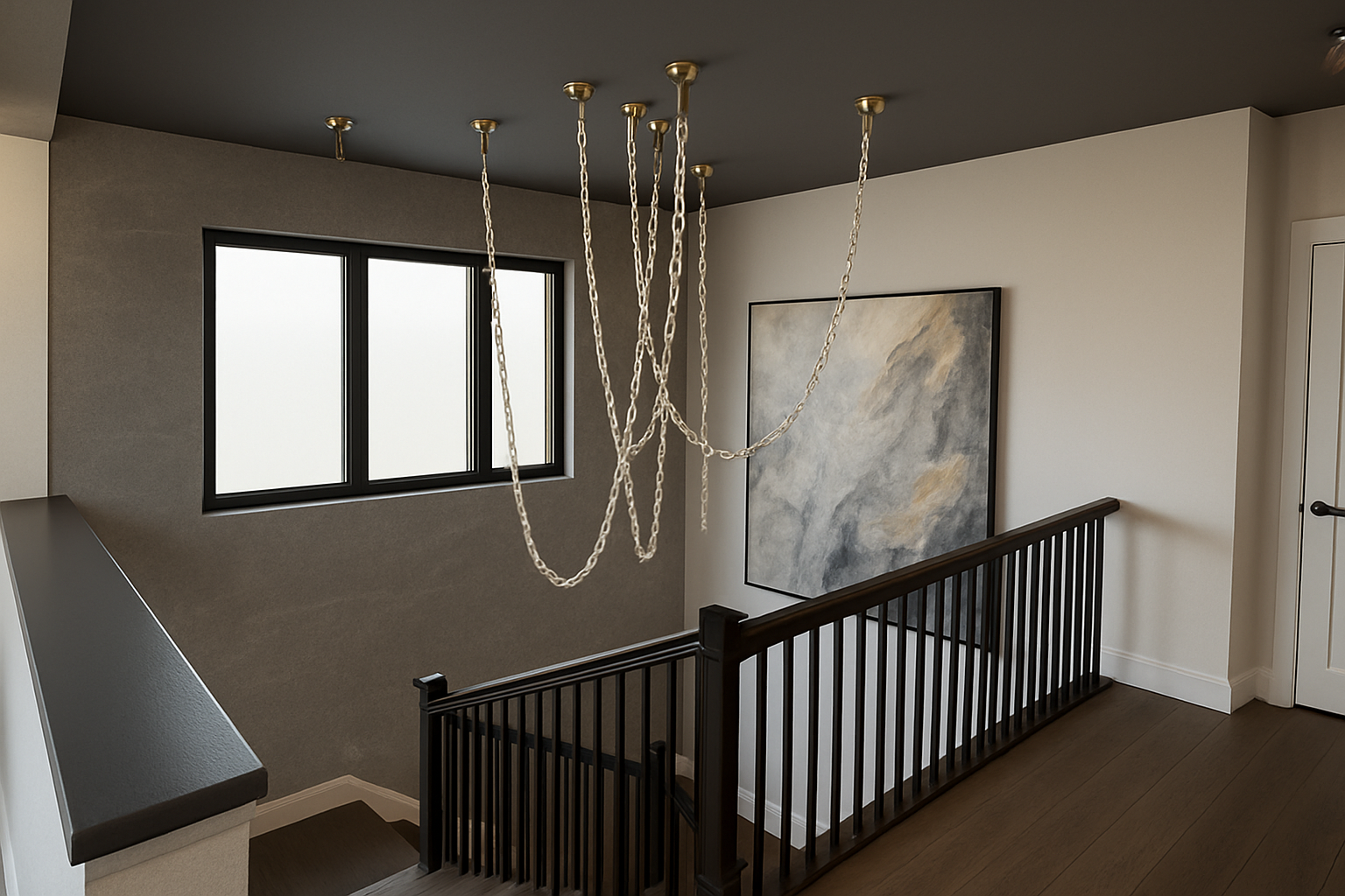 prairie style exterior shot render a charming suburban house with a classic gabled roof use warm cream for the walls accented with deep forest green for the window frames and doors the roof should be a comforting slate gray brickwork below the walls should be a rich terracotta the atmosphere is cozy and inviting under a clear blue sky with golden sunlight casting soft shadows surrounded by vibrant green shrubs and colorful flower beds architecture