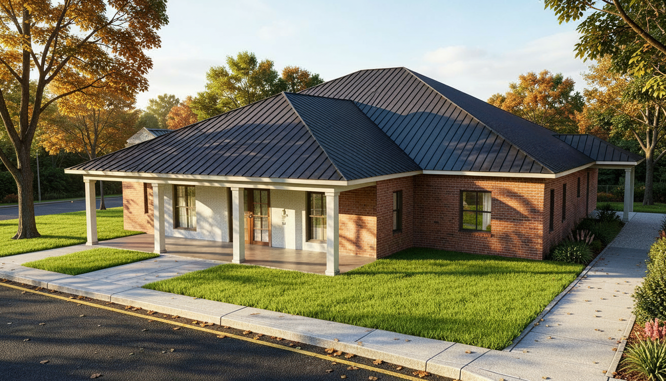 add audience they are sitting on the chairs and watching the program on the stage the stage is in front of the screen the stage is low only 10cm high there is blue carpet on the stage but on the floor around it on stage there is 2 light brown modern sofas on the sofas is sitting 4 people there is also a hostess who is representing the guests sitting on sofas to the audience on the screen there is blue white modern graphics and in the middle the text team finland day 2026 keep the tables and chairs as they are in the picture the stage is placed close to the screen the stage is quite small and moderate