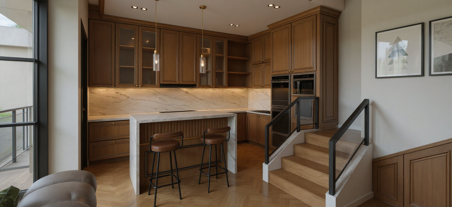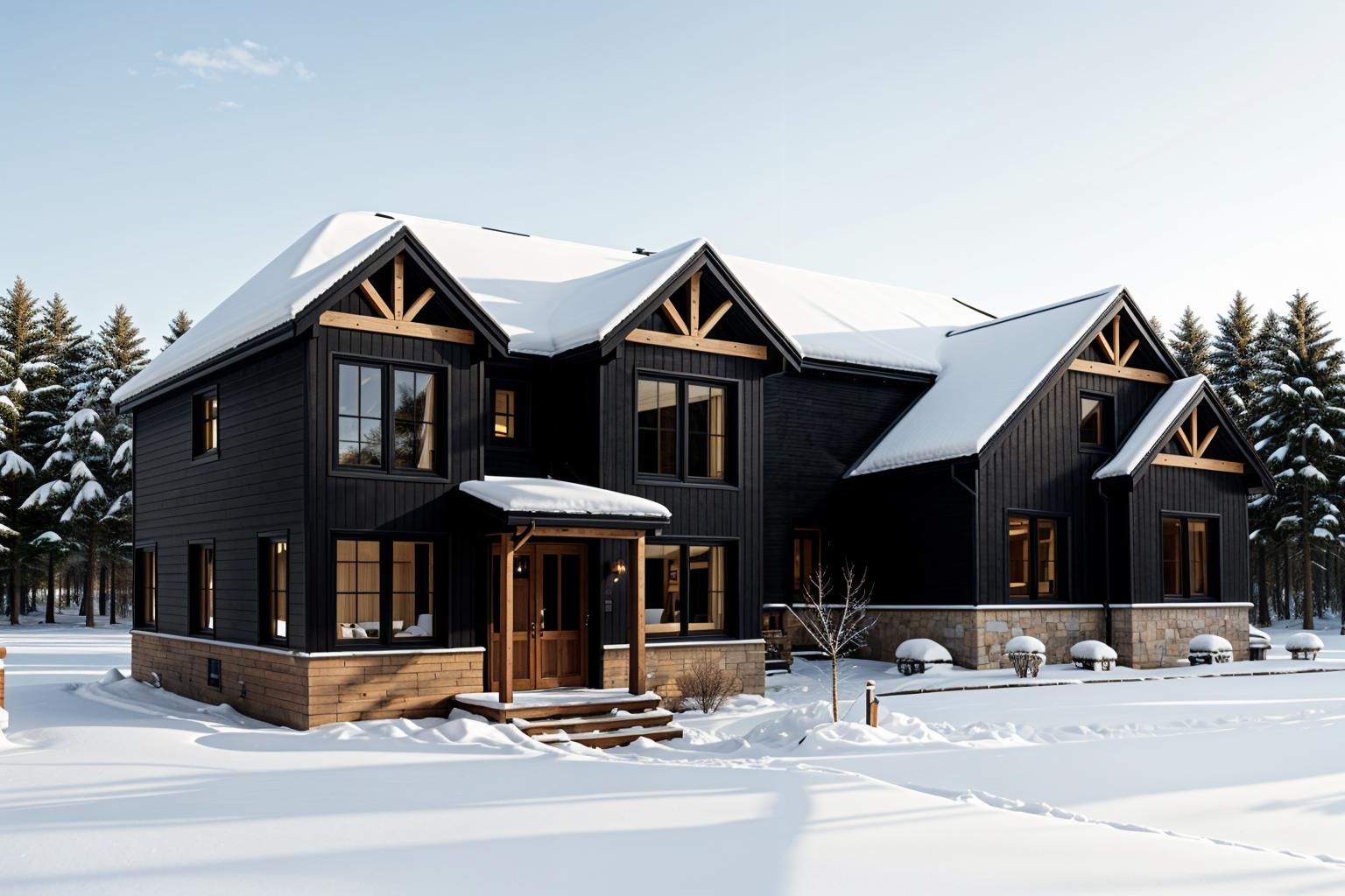 afternoon lighting with some lights on inside the house add a waterfall effect to the infinity edge of the swimming pool add plants and grasses and trees native to malibu california and on the hills in the distance add some two people sitting on the sofa by the fire pit make the wind guard on the fire pit glass add a man and woman standing on the balcony add a woman swimming laps in the pool add some people on the chaise lounges and around the pool the upper right space inside the house is the kitchen with an island in the center of it make the lower story of the house dark gray narrow roman bricks material add 2 people standing the center space on the pool level standing and having drinks add some birds flying the sky and a few clouds