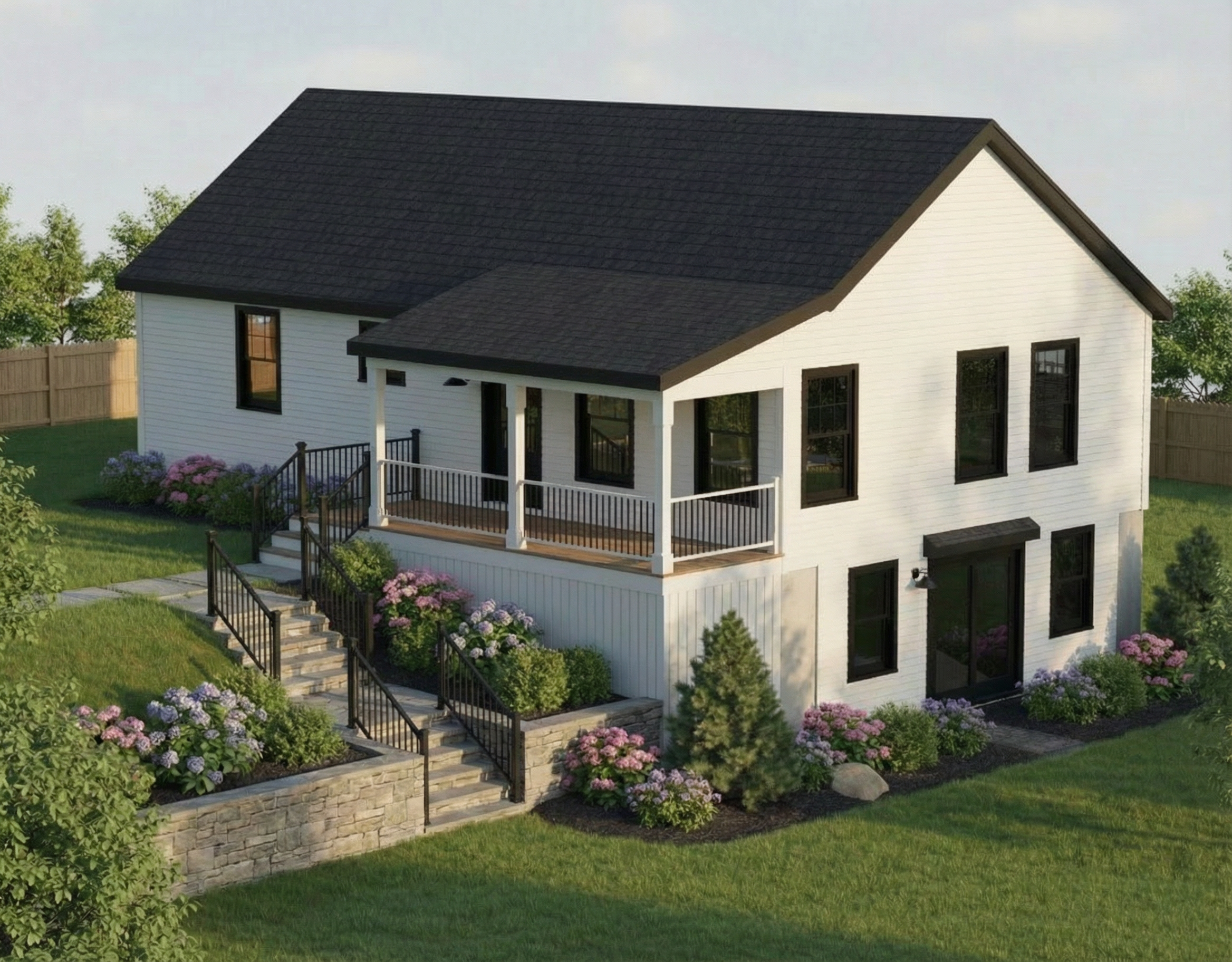 render this image as a site plan with an apartment parking garage covered walkway two identical buildings