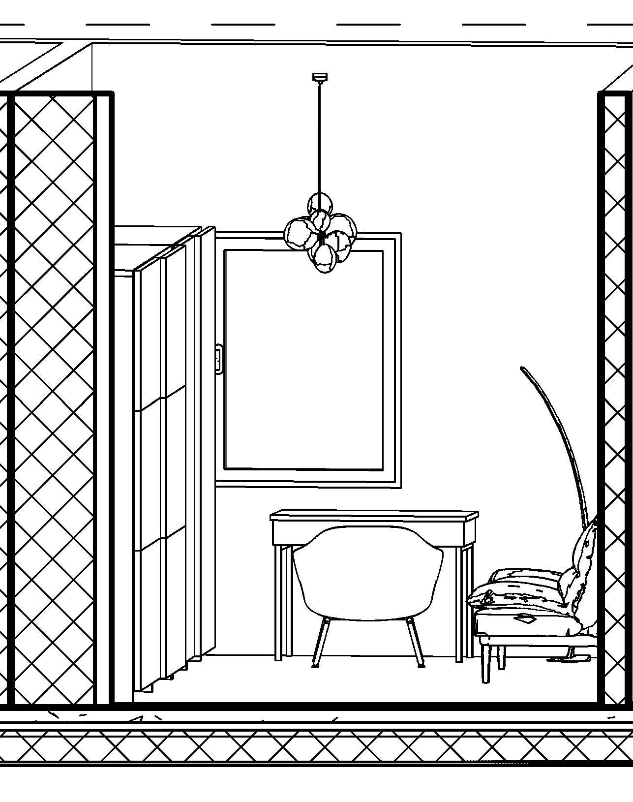 render a modern stylish interior room use warm neutral tones for the walls a soft beige or light cream add a window with a view of a serene garden with lush greenery and subtle sunlight streaming in the desk is minimalist with a matte white finish the chair is upholstered with a soft grey fabric the floor has a dark natural wood texture the lamp is a sleek modern design in brushed metal create a cozy inviting atmosphere with gentle ambient lighting