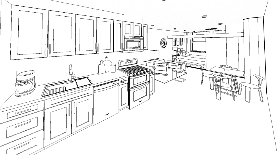high end apartment cream upper cabinets and midtown wood bottom cabinets with lvt stone flooring