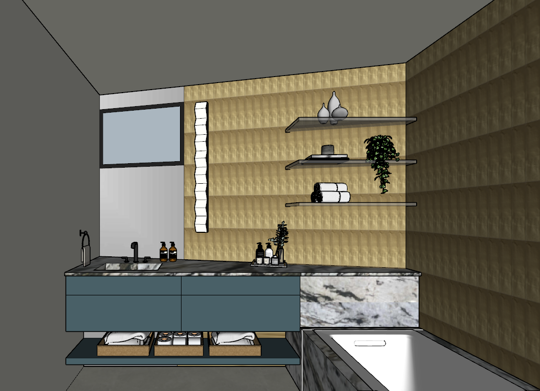 the yellow tile is metallic gold subway straight lay standing the material above sink is mirror