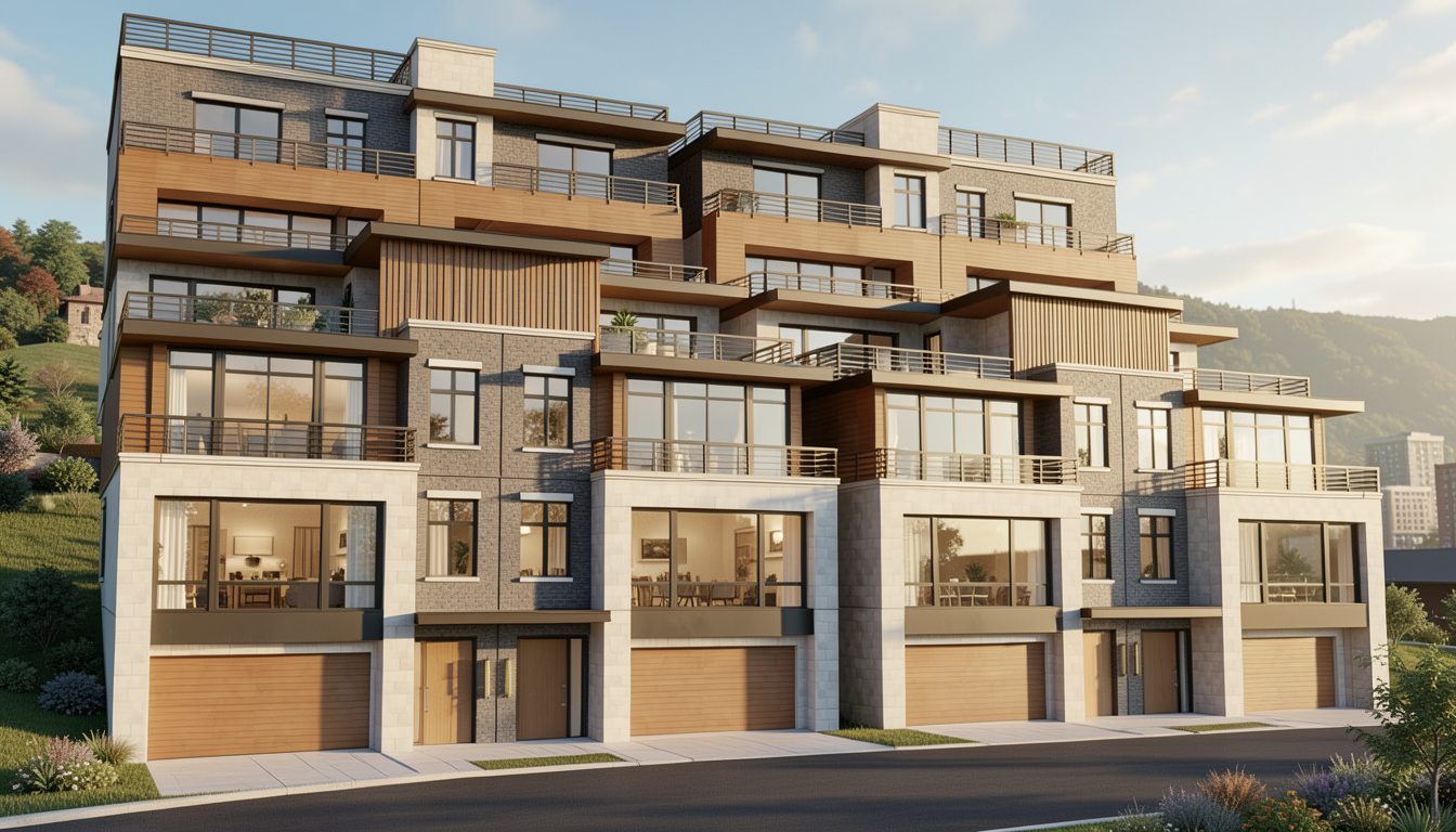 minimalism exterior shot mantieni questa inquadratura luce al tramonto atmosfera famigliare e accogliente arredo di lusso il divano va messo sotto la finestra piccola ha una forma a l il tavolo da pranzo grande va messo davanti alla finestra grande faretti incassati a soffitto architecture