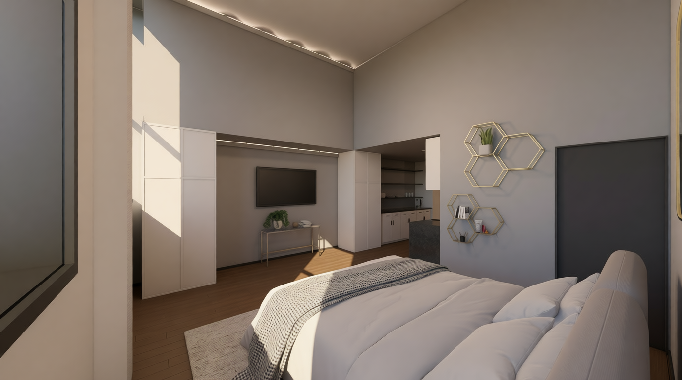 stylish modern indoor shopping centre with a sleek design and a luxurious atmosphere satin finish tile floors in soft beige tone storefronts feature large framed glass windows showcasing elegant displays overall the ceiling should remain white ambient lighting cast a warm golden glow keep the material color finishes texture and shape add shopping people in render the inviting and sophisticated mood do not change the furniture texture and color it should be plastic