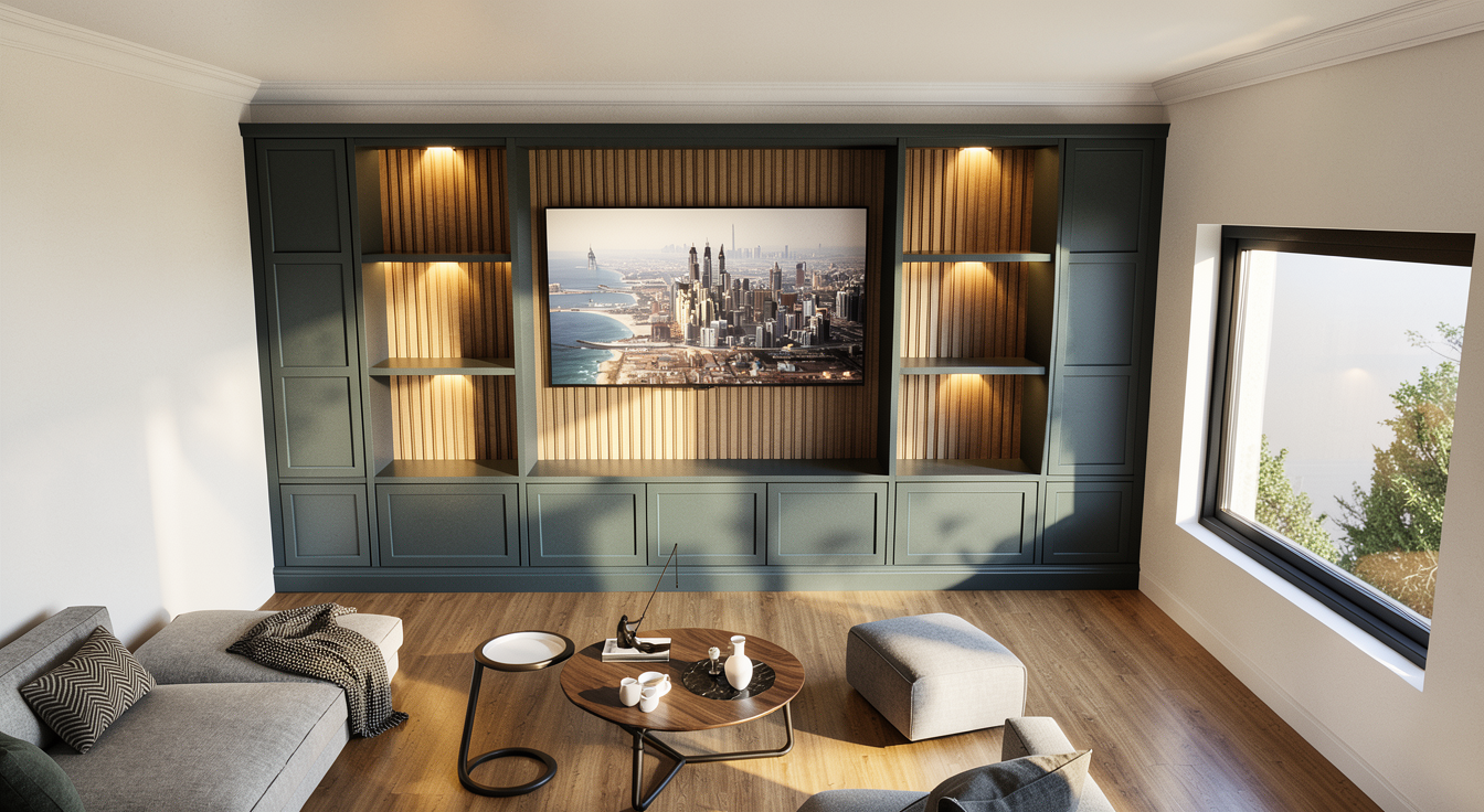 furnish the living room according to the layout wit 2 sofas and a tv and electric fire place