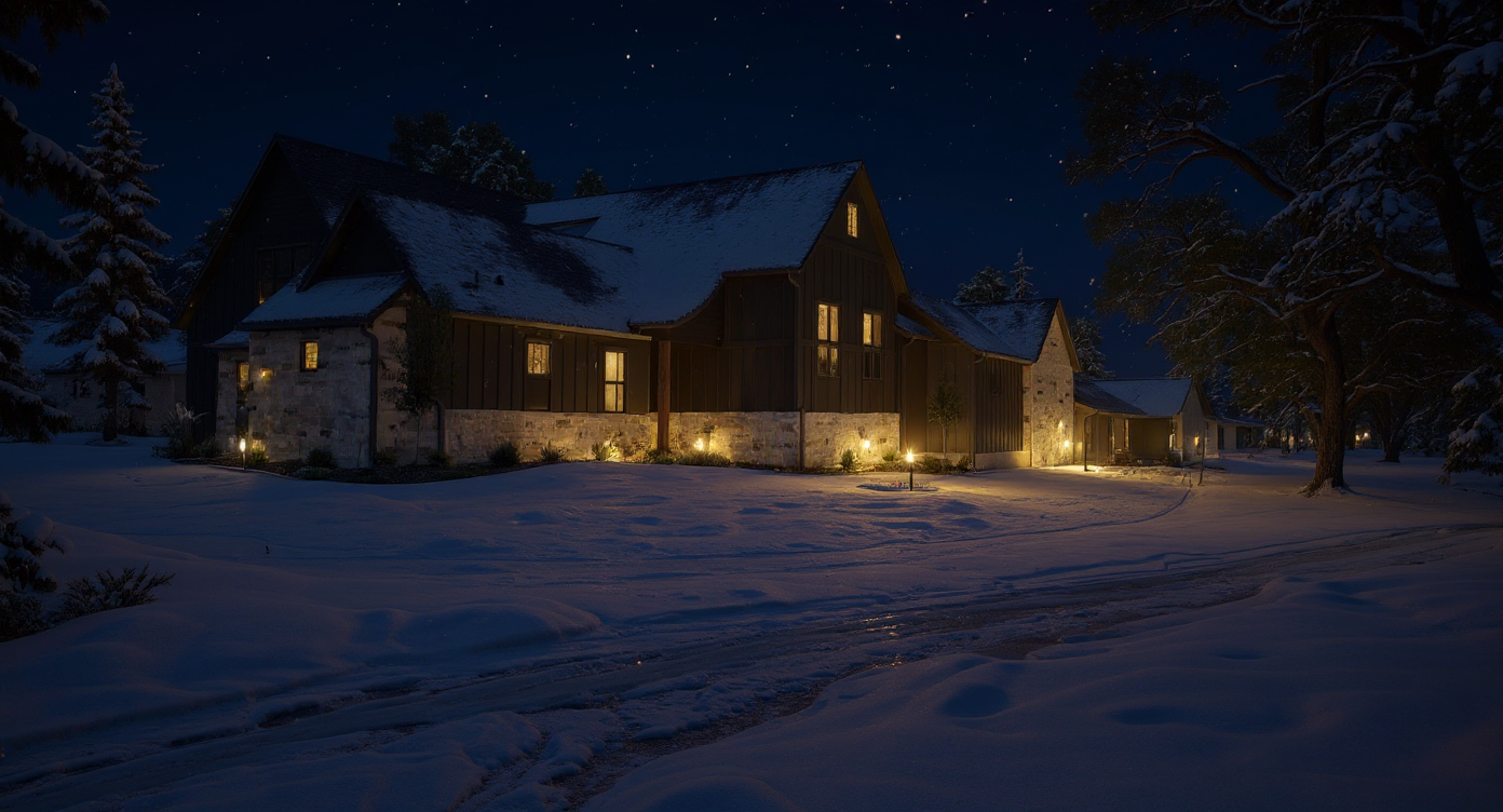 add a warm colored rectangular stone backsplash with black metal brackets on walnut shelfs on the walls add metal pendant lights over the kitchen island and accessories to the countertops the floors will be polished cement the style is rustic modern