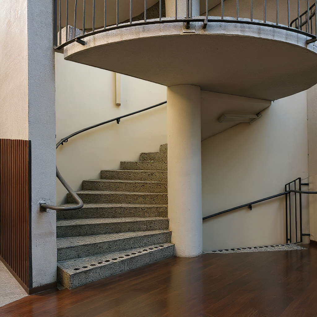 make hand rail wrapped in dark brown leather but keep everyhing else as it is please wrap the hand rail going sown as well