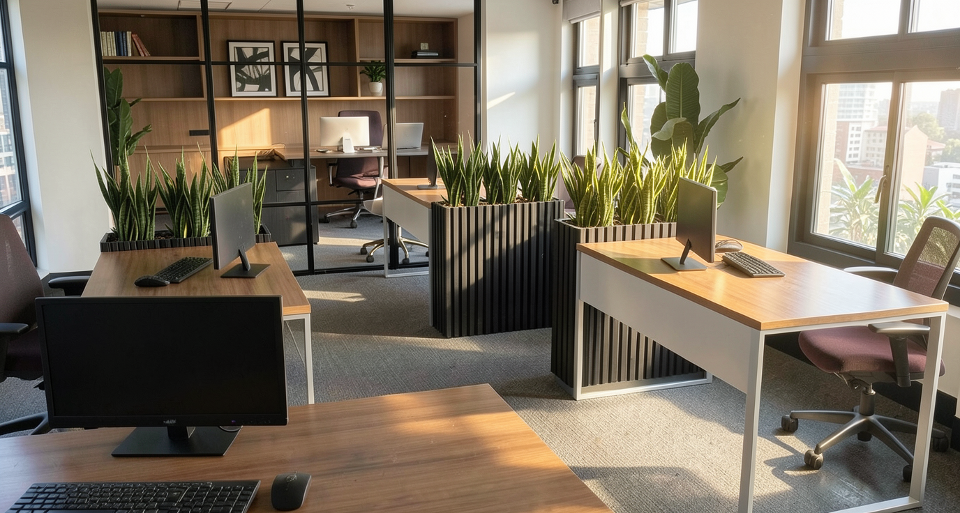make office look realistic remove buildings from outside window remove purple from chairs remove purple from chairs