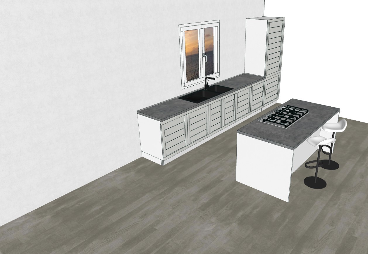 fai foto realistica con luci calde inserisci qualche oggetto da cucina bottiglie e bicchieri