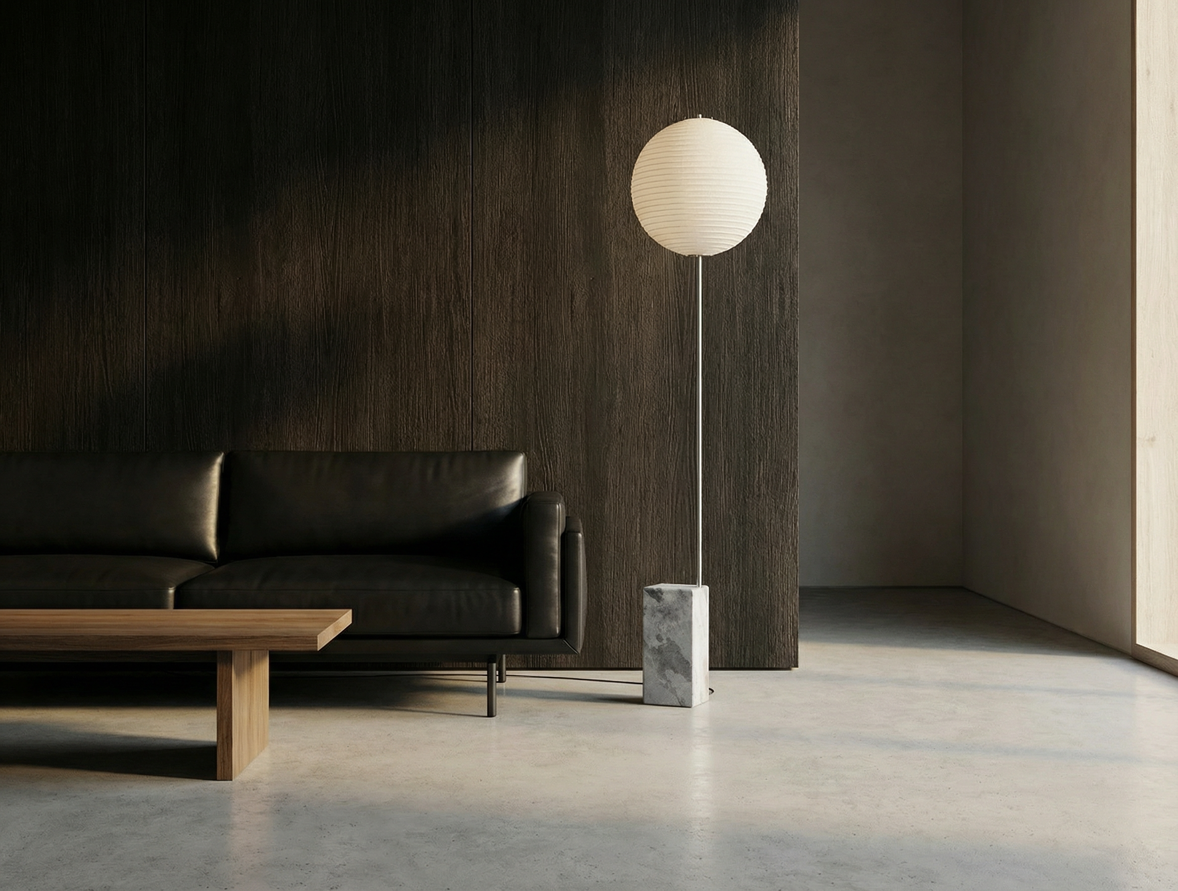 necesito una imagen fotorealista las texturas son las siguientes el suelo el porcelanico imitacion microcemento gris claro la pared de fondo pintura lisa blanca y el mobiliario compuesto de varios paneles verticales es lacado mate gris claro y los tres muebles bajos en madera roble negro es una sala interior con luz artificial suave todos los modulos horizontales son negros has puesto dos negros y uno gris el gris de los paneles que van detras de la tv es un poco mas claro a ade luz led en los tres lados del panel en los laterales y en la zona superior bien la luz del tehco me gusta dejala pero vamos a modificar la luz de los paneles eliminala porque no esta bien los paneles traseros estan divididos en piezas pero redistribuyelos de forma que no coindican con el inicio y final de la tv a ade luz en la parte inferior del mueble negro colgado elmina la luz de detras de la tv