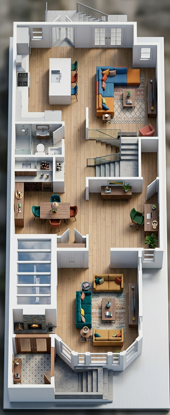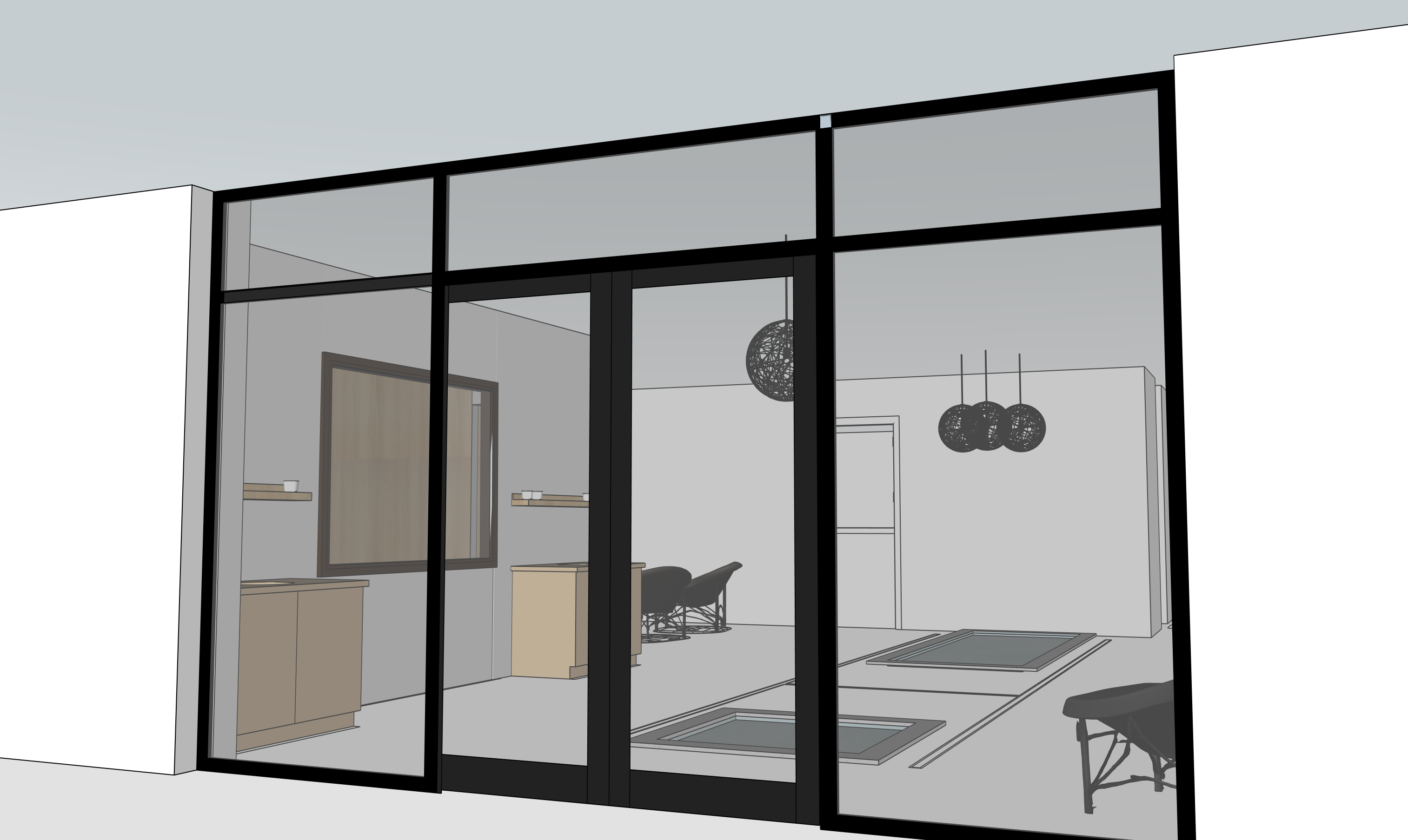 interior concrete floor white walls cold plunge pools in floor spa space pendants are white minimalist