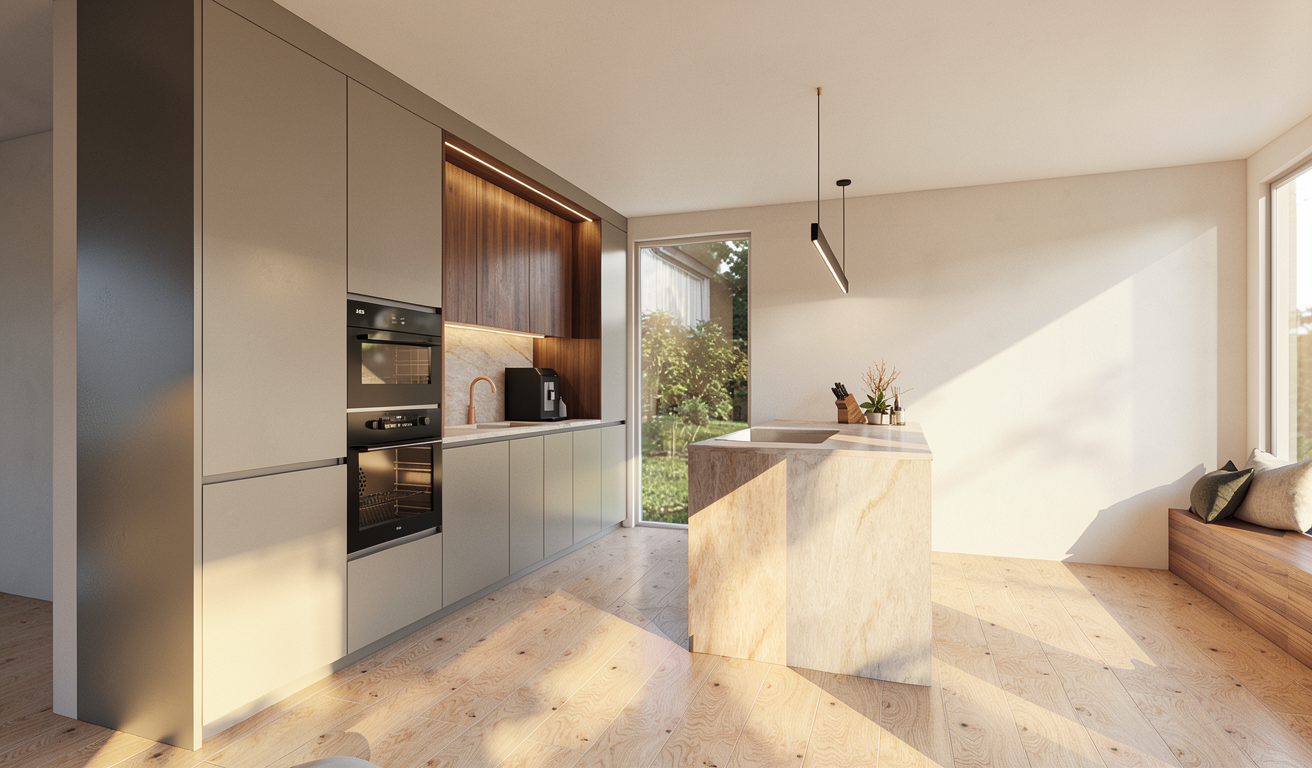 based strictly on the provided input image enhance the render quality without altering architecture layout geometry proportions camera angle or composition preserve all spatial elements exactly as they are improve material realism using high quality pbr textures refined surface details accurate roughness subtle reflections realistic glass transparency improved wood grain metal finishes and fabric textures enhance lighting increase natural daylight realism balanced exposure soft global illumination realistic shadow softness no overexposure no burned highlights add subtle artificial office lighting recessed lights soft led accents while maintaining original light direction upgrade to a modern office style through material refinement and staging only do not move or add architectural elements clean professional minimal corporate aesthetic organized surfaces subtle decor such as office plants laptops and ergonomic furniture if already present boost overall image quality ultra sharp details ray traced reflections ambient occlusion global illumination bounce realistic contrast hdr rendering noise free high dynamic range color grading neutral and professional tones soft contrast slightly warm highlights natural whites no color cast final result photorealistic architectural visualization unreal engine v ray quality 8k resolution crisp clean professional office environment