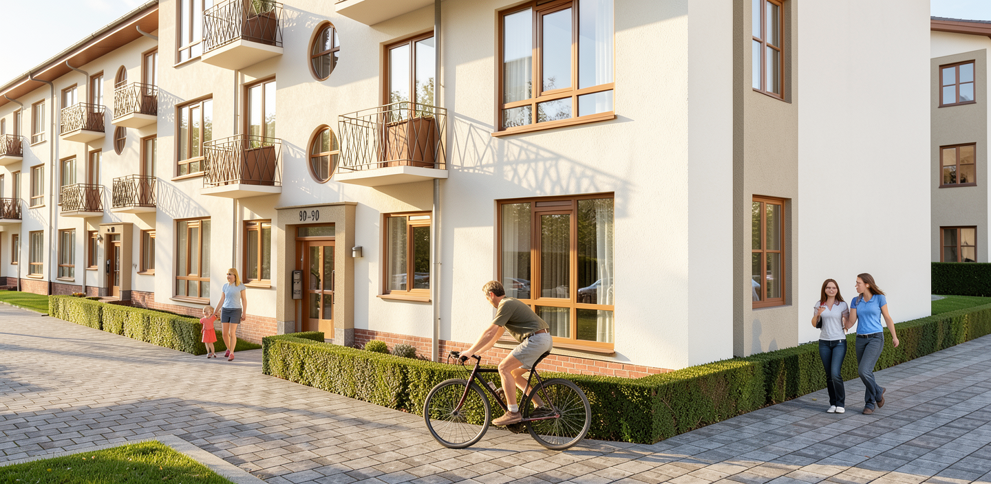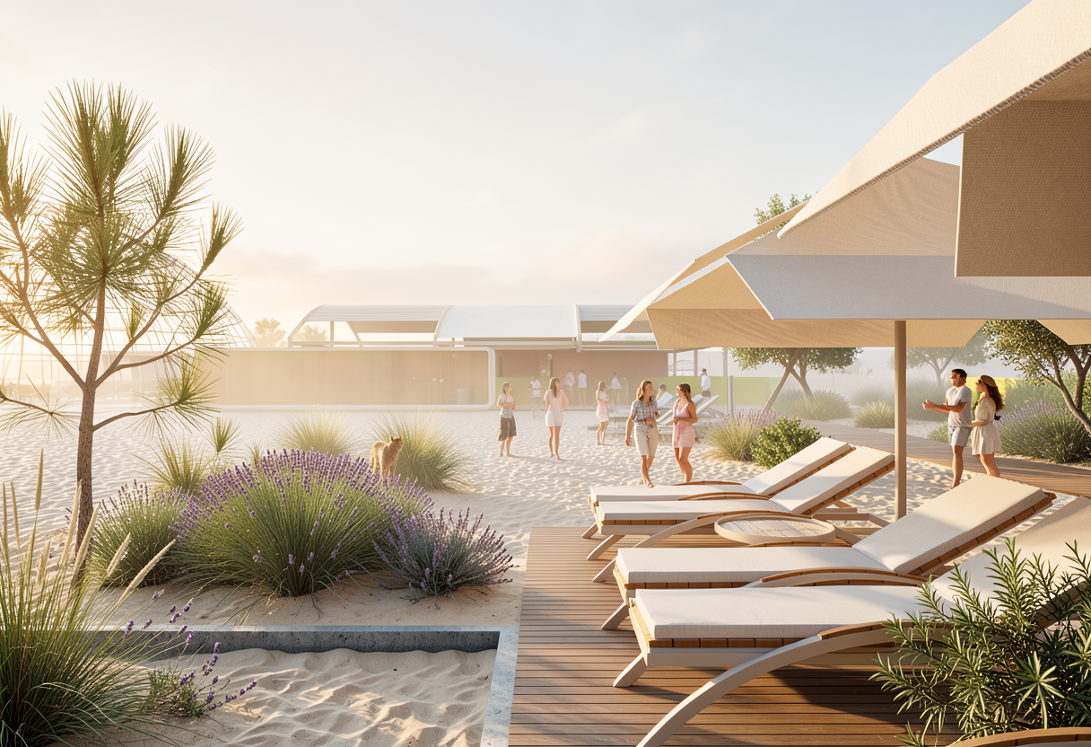 retain the landscape and context the building mass is a simple solid rectangular prism with slightly softened edges and corners allowing the geometry to flow continuously across all faces including corners generate a sculptural building facade composed of fluid wave like metallic surfaces inspired by ocean movement and coastal landscapes the facade should consist of overlapping free form curved panels that twist and fold dynamically resembling wind shaped waves and flowing water integrate reflective metal cladding brushed aluminum or titanium like finish with soft irregular curvature avoiding repetition so the facade feels organic and expressive panels should vary in scale and orientation creating a fragmented yet continuous surface insert irregularly shaped glass openings between the metal forms appearing as fissures or carved voids within the flowing skin glass should be slightly tinted cool blue grey with high reflectivity contrasting with the matte or semi gloss metal the overall composition should evoke motion like waves crashing or dunes shaped by wind while maintaining architectural coherence avoid rigid grids instead use controlled randomness and smooth transitions between surfaces emphasize light interaction strong reflections highlights and shadows across curved metal creating depth and dynamism throughout the day style deconstructivist fluid expressive architecture inspired by gehry coastal wave forms parametric yet irregular the ground floor is flushed and has glass facade the parametric facade starts above the glass faacde make the roof have few skylights that flow into the form
