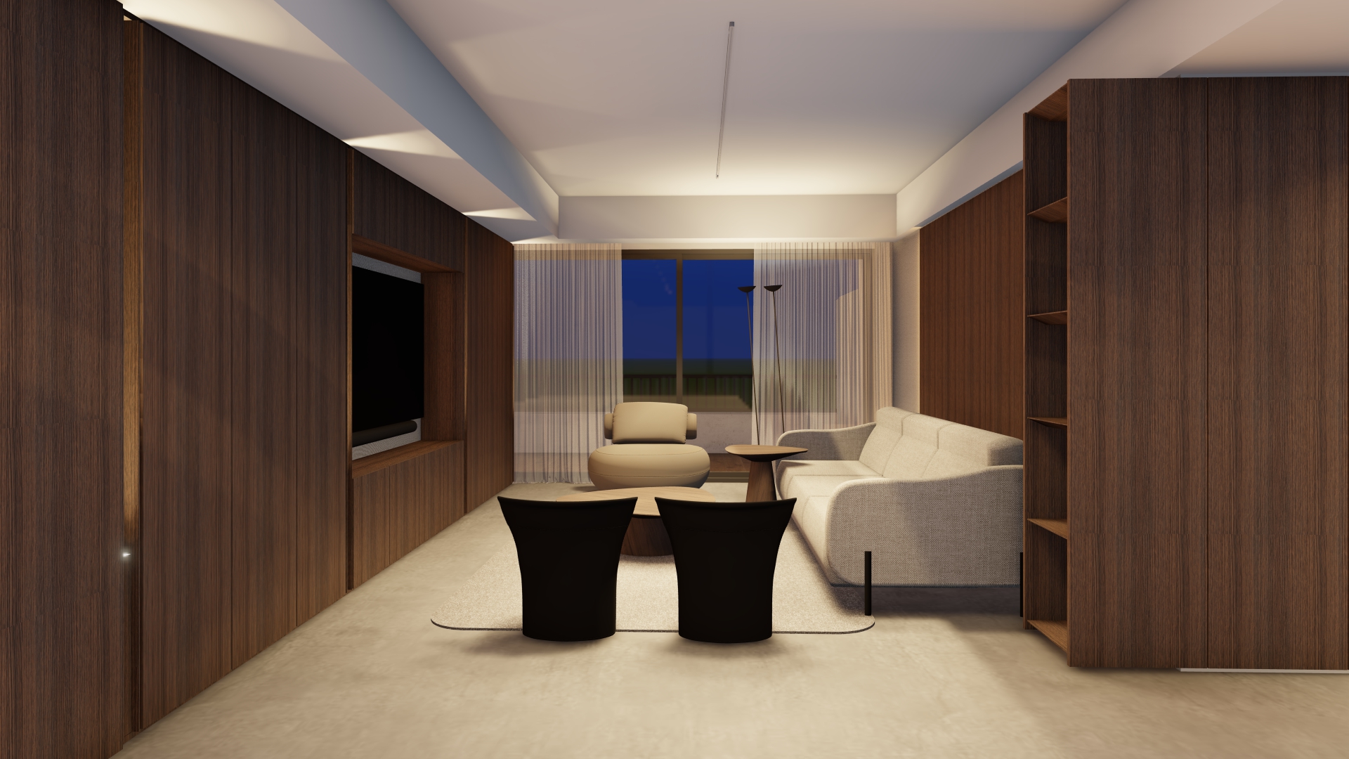 render this image in a realistic style maintaining the exact same composition furnishings and design without adding or removing elements